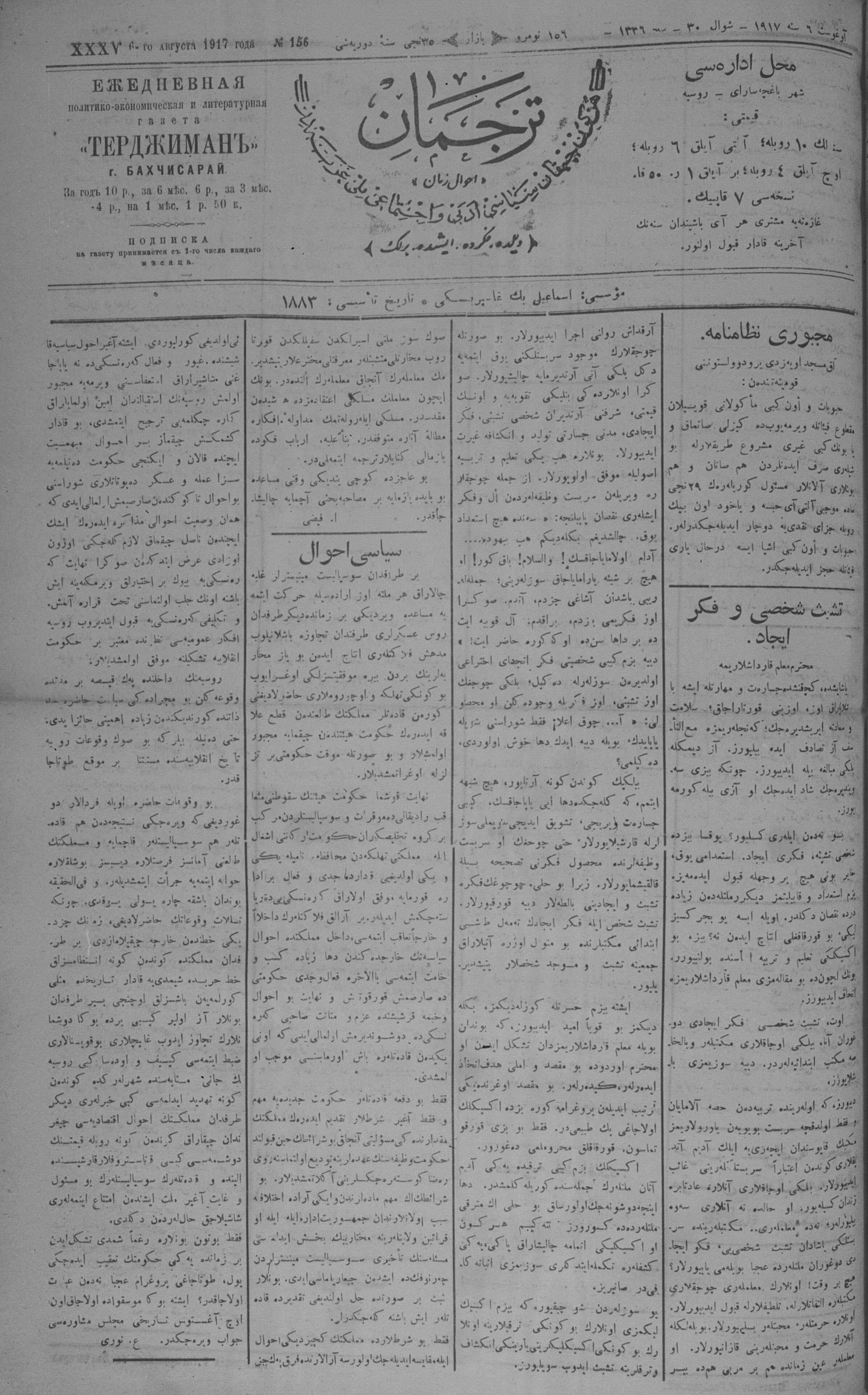 Turkish-Russian newspaper published in Crimea by İsmail Gaspıralı.