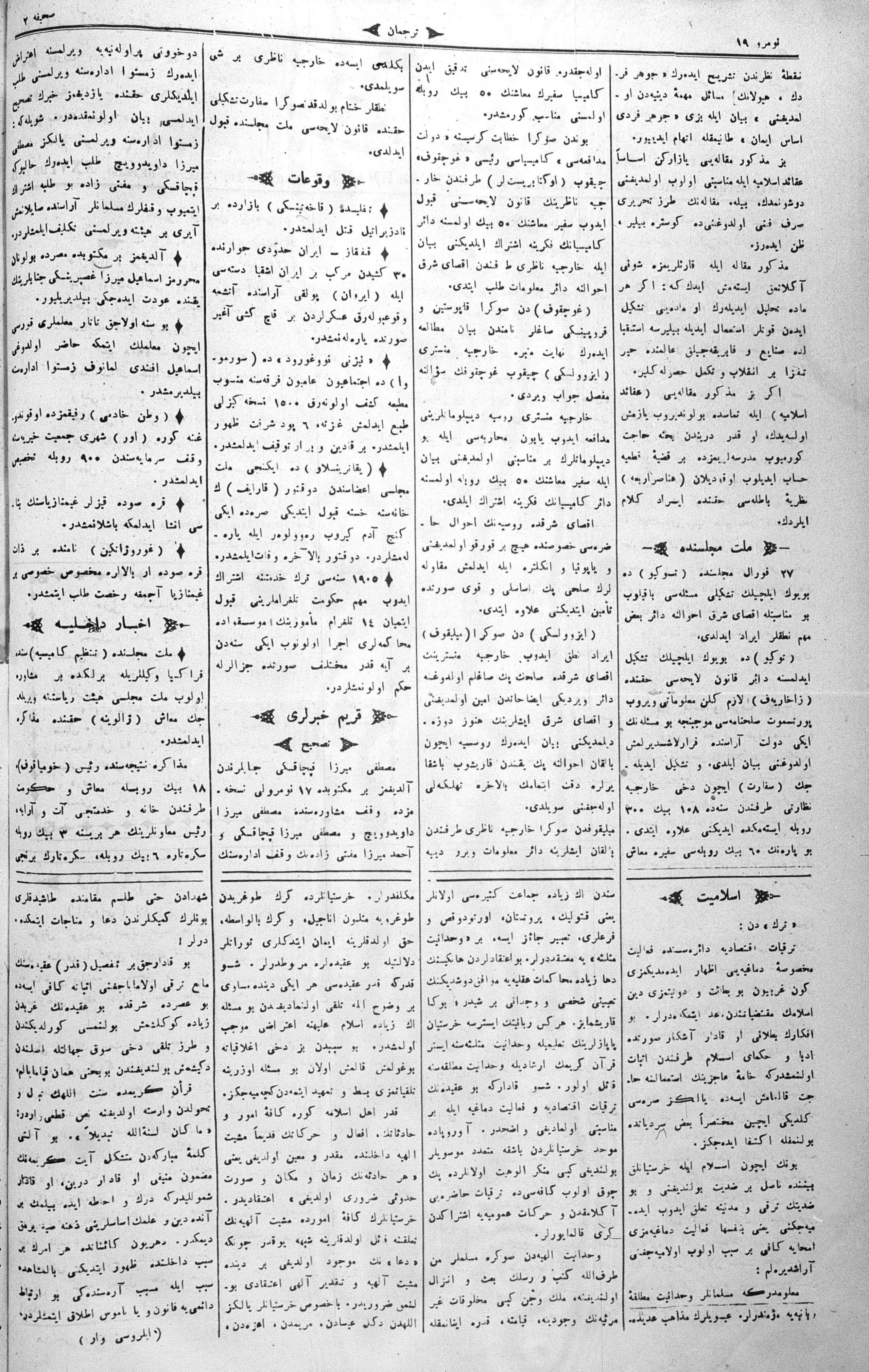 The name of the newspaper changed to Tercüman-ı Ahval-i Zaman in 1905. In 1909, it started to be published under its first name, Tercüman.
