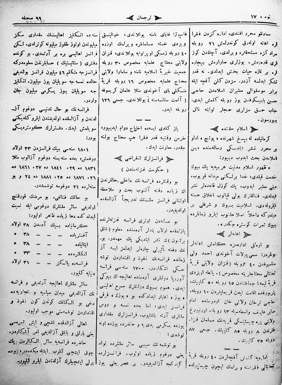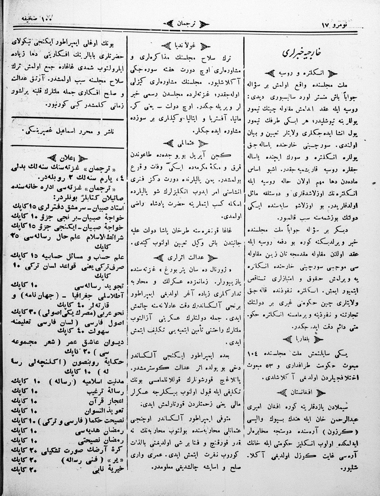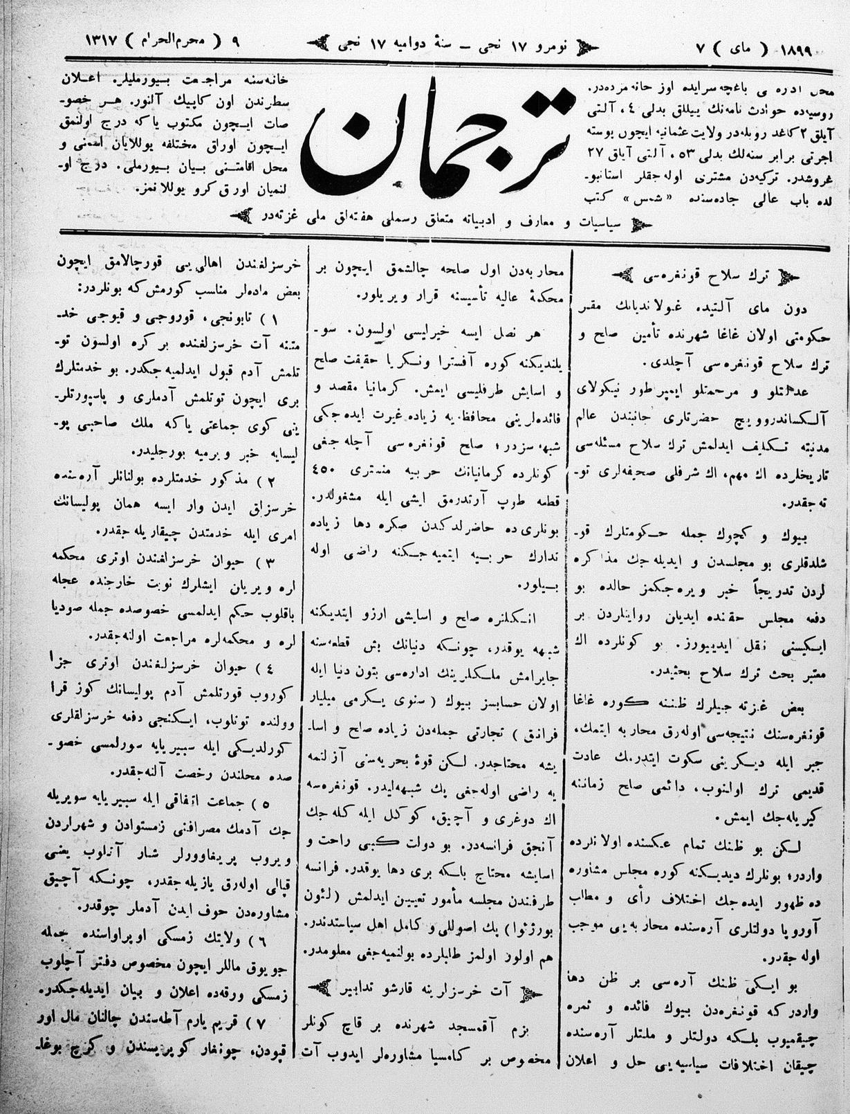 The name of the newspaper changed to Tercüman-ı Ahval-i Zaman in 1905. In 1909, it started to be published under its first name, Tercüman.