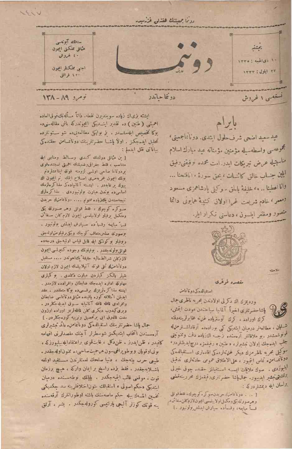 The name of the periodical was published under the following titles in different periods: Donanma: Donanma Cemiyetinin haftalık gazetesi; Donanma: istikbal denizlerdedir; Donanma: şimdilik ayda bir defa neşrolunur; Donanma: ayda bir defa neşr olunur, musavver, ahlaki, edebi, tarihi, fenni mecmuadır.