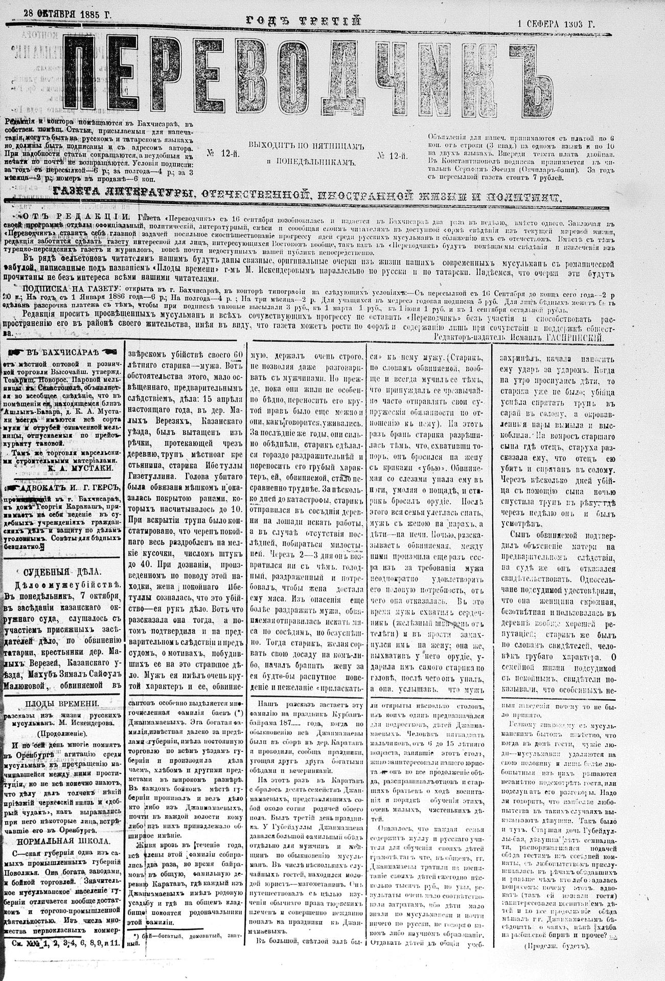 Turkish-Russian newspaper published in Crimea by Gaspirali Ismail Bey.