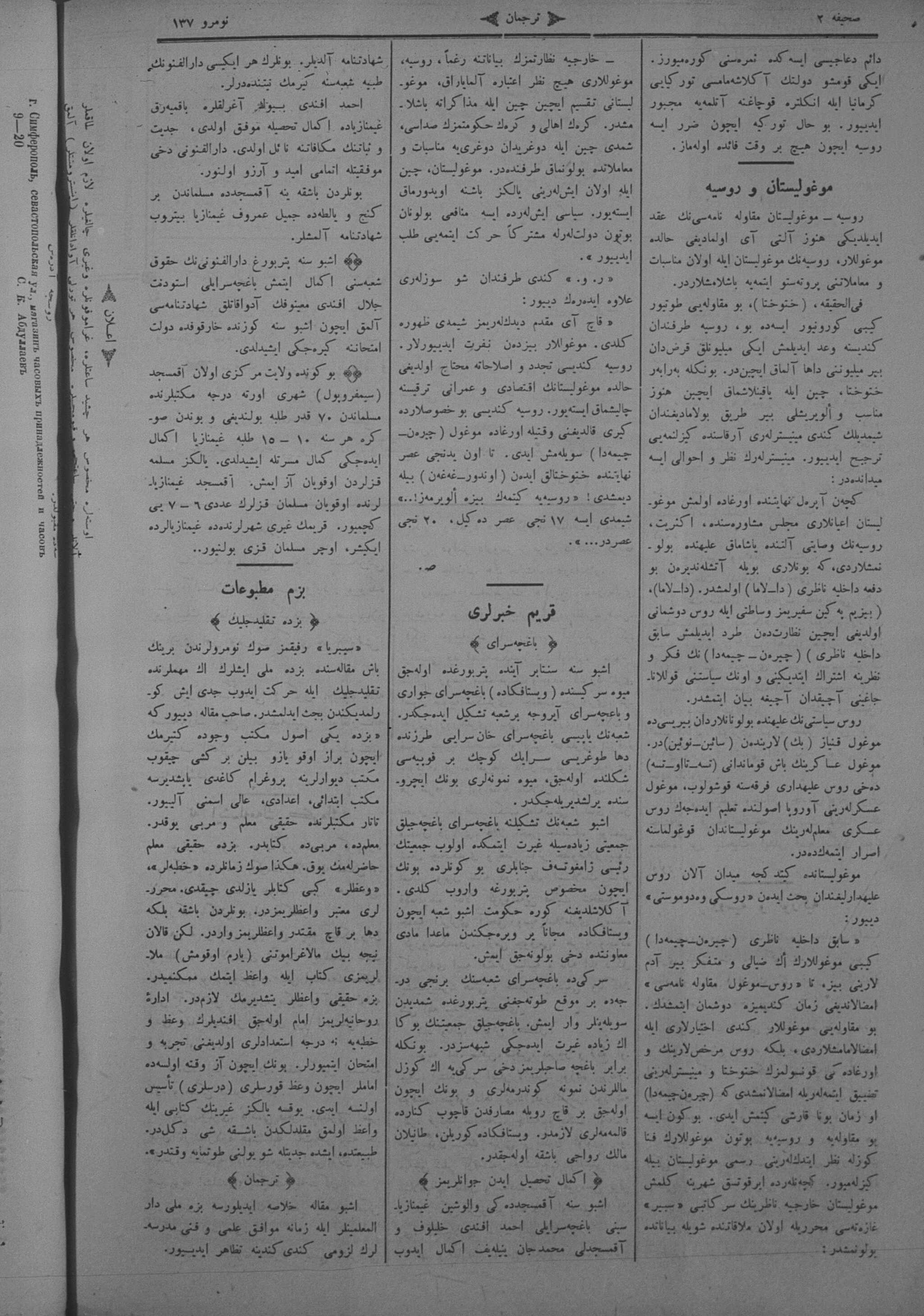 | dc.description | Turkish-Russian newspaper published in Crimea by İsmail Gaspıralı. | |