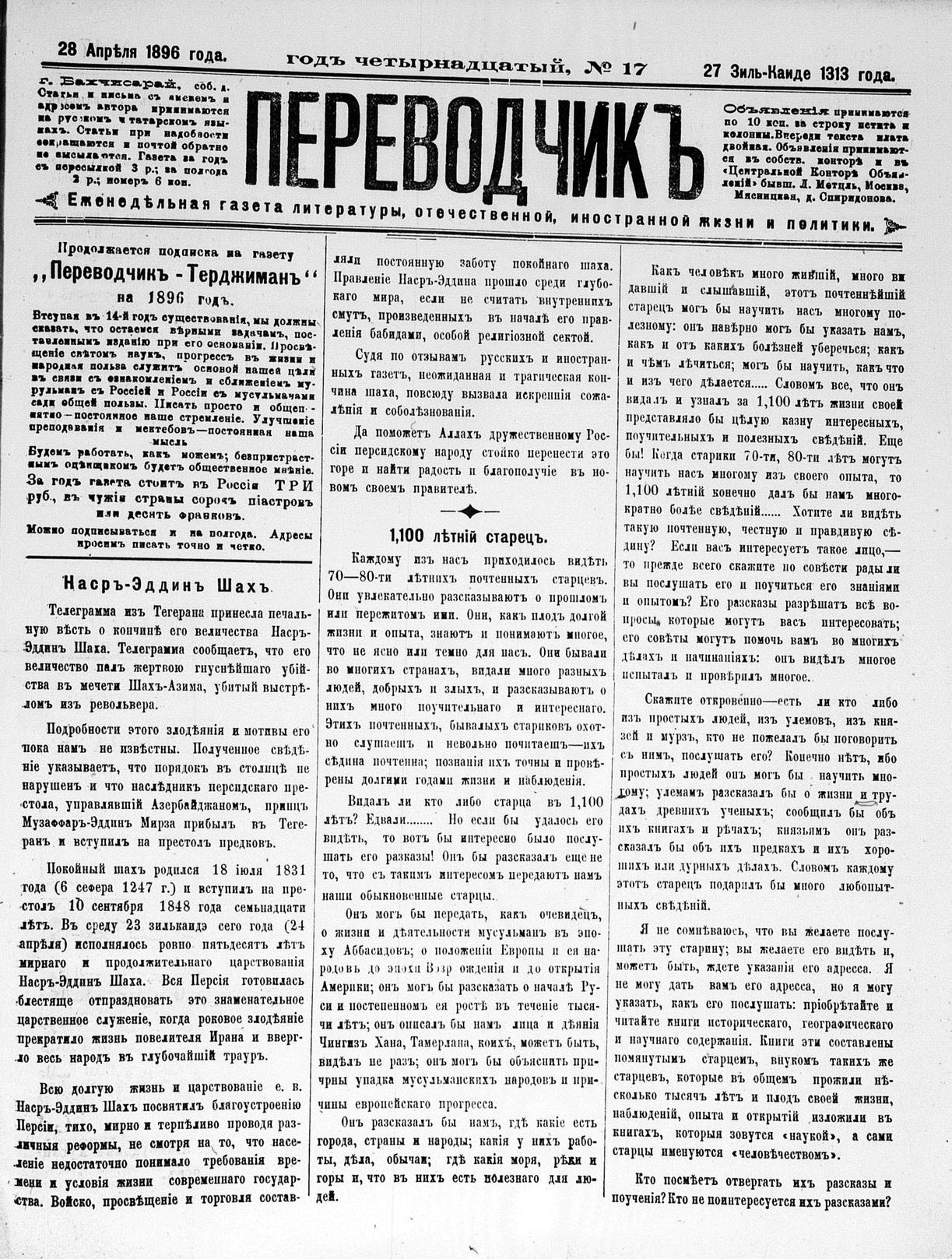 Tercüman, 28 April 1896 Year 14 No 17