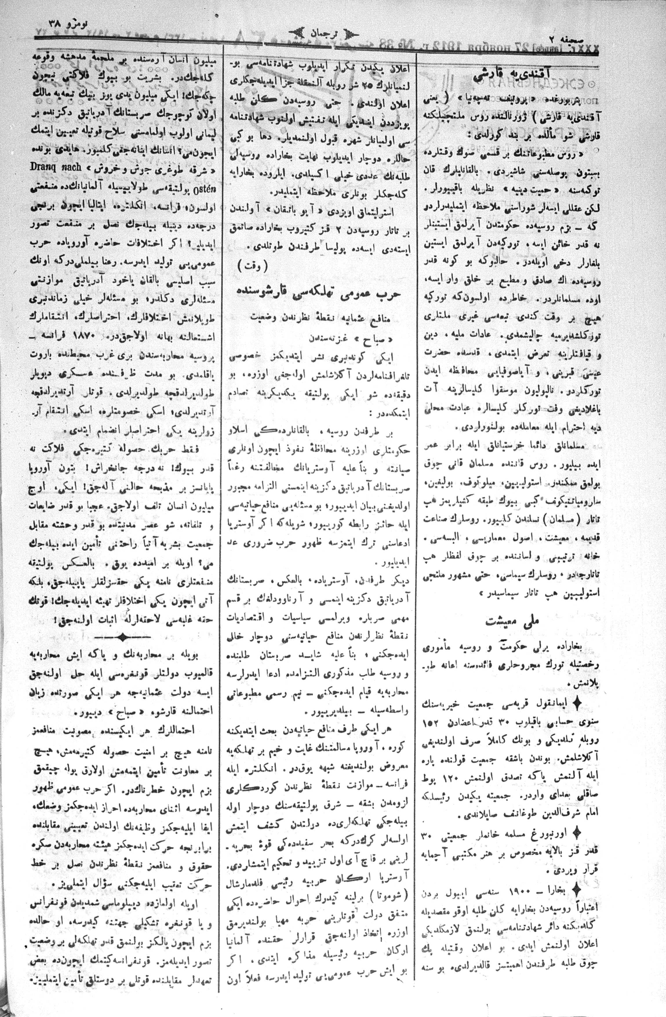 Tercüman, 27 November 1912 Year 30 No 38
