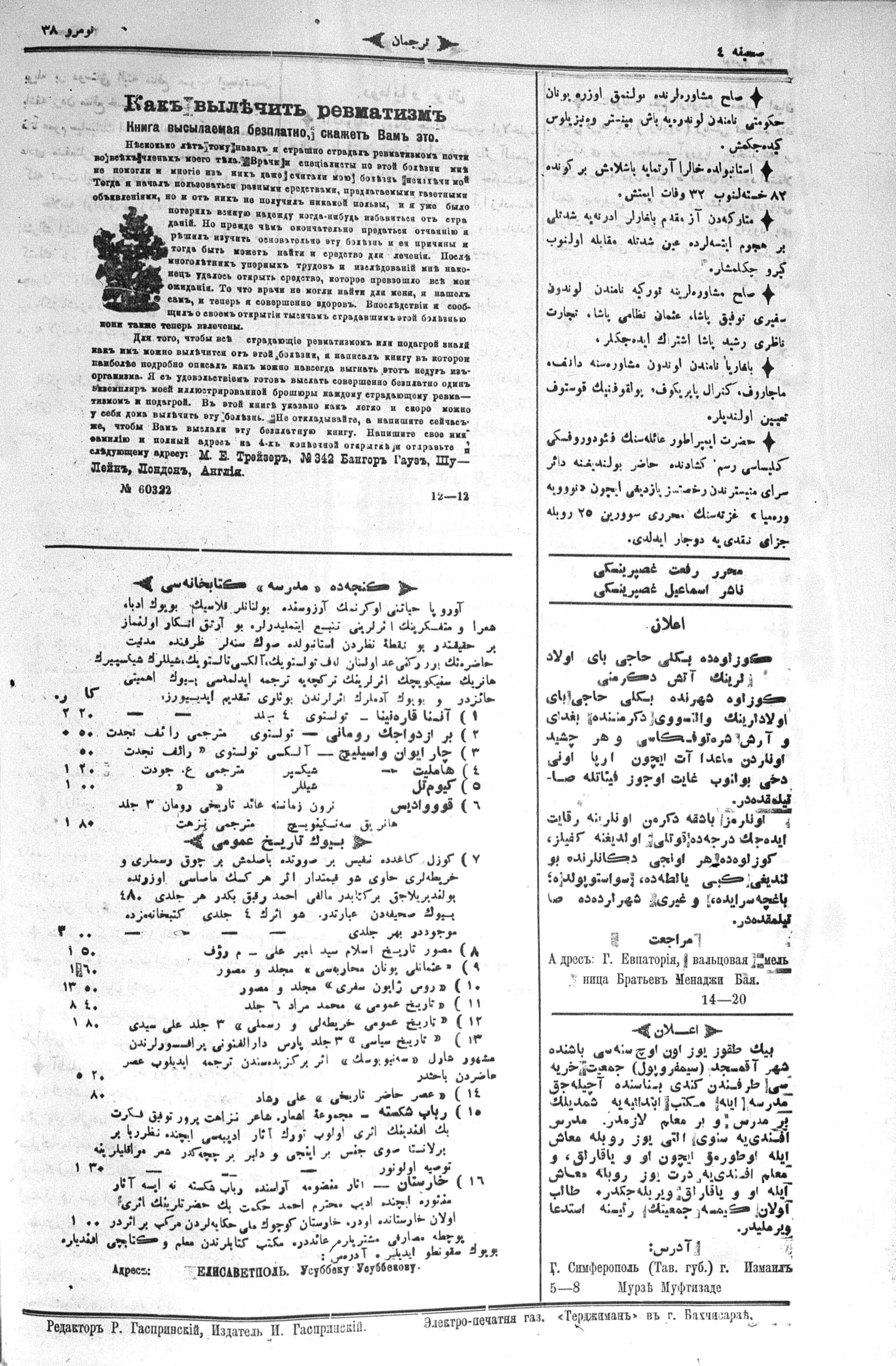 Turkish-Russian newspaper published in Crimea by İsmail Gaspıralı.
