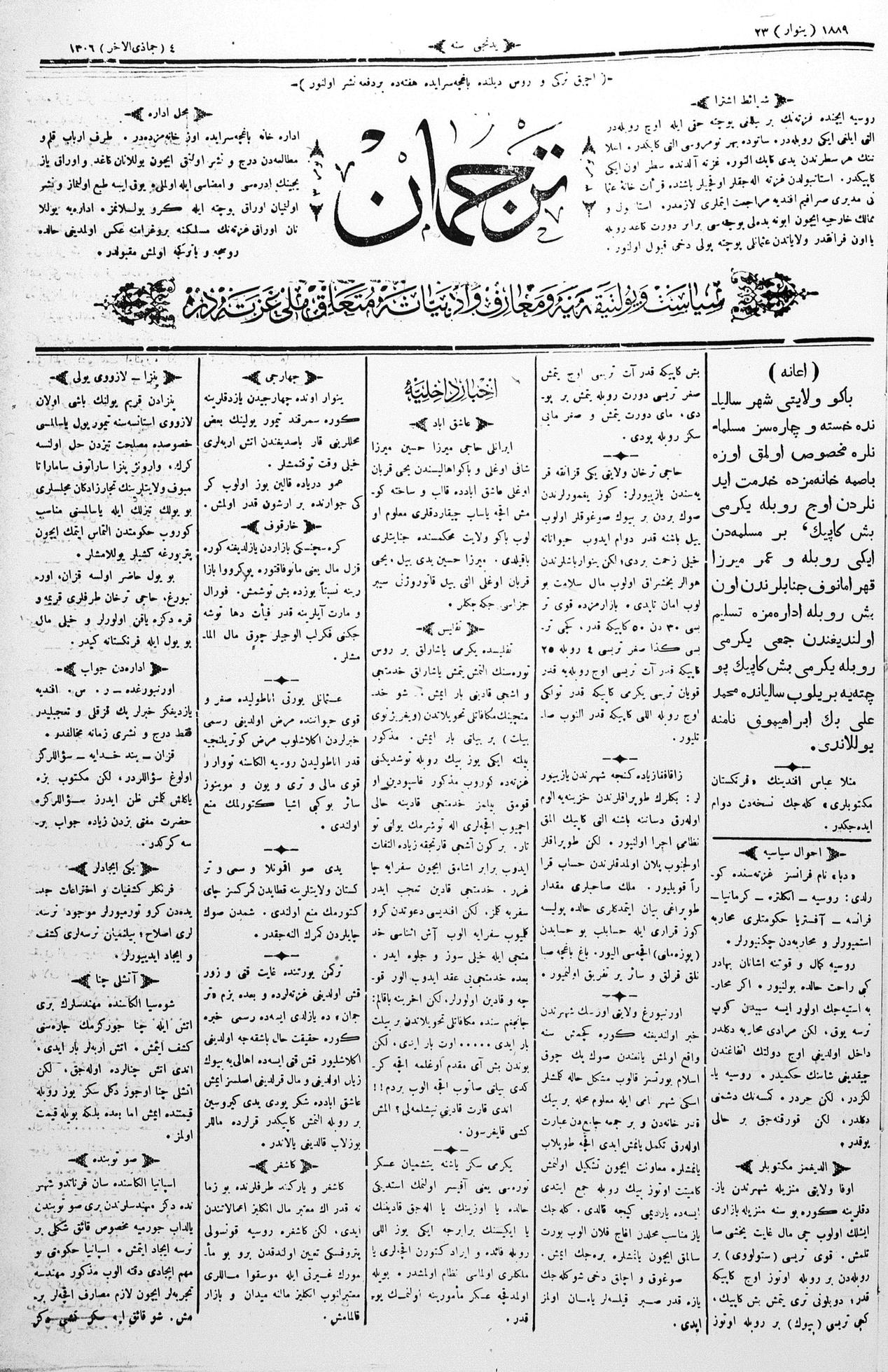 Tercüman, 23 January 1889 Year 7 No 3