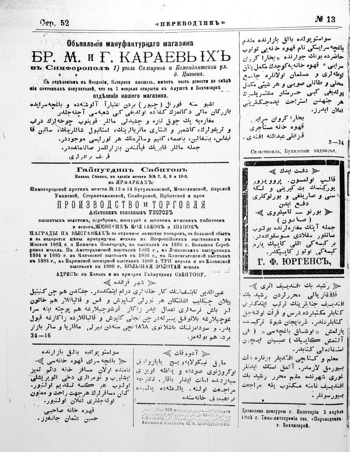 Different spellings of Tercüman: Terdzhiman, Terjuman, Perevodçik and Terjiman.
