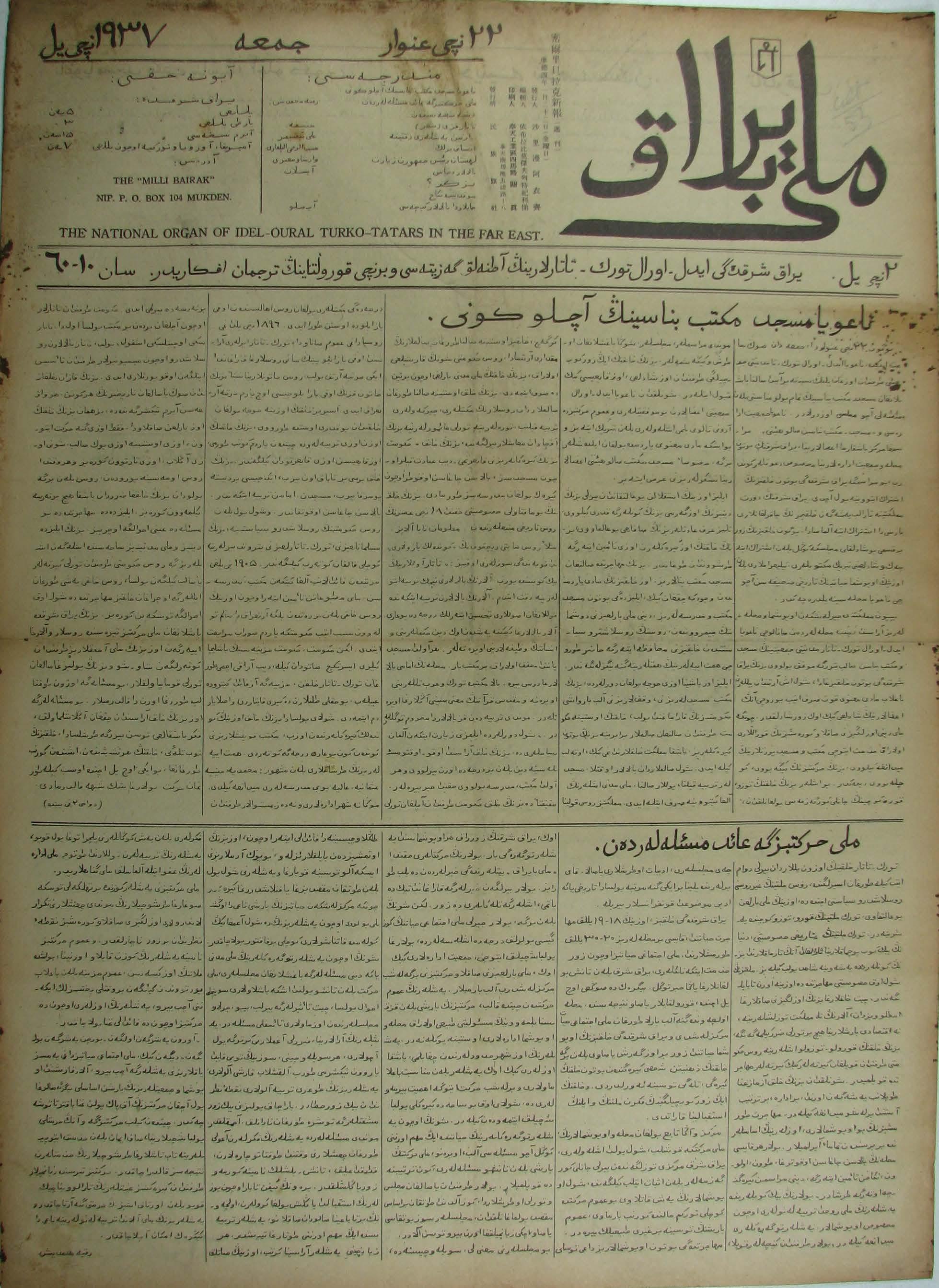The Milli Bayrak newspaper was printed in Mukden.