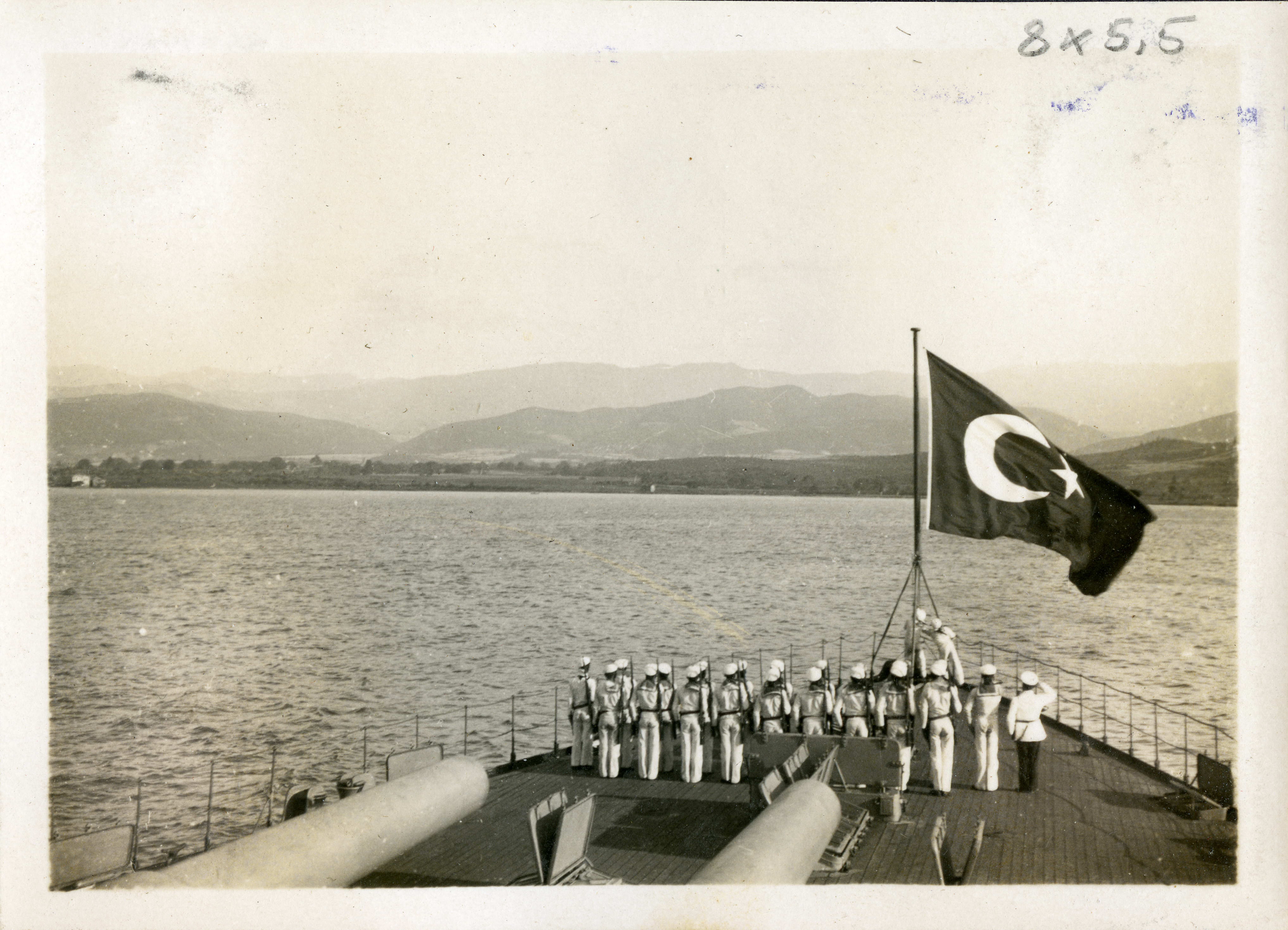Türk donanma gemilerinden birinin güvertesinde bayrak töreni