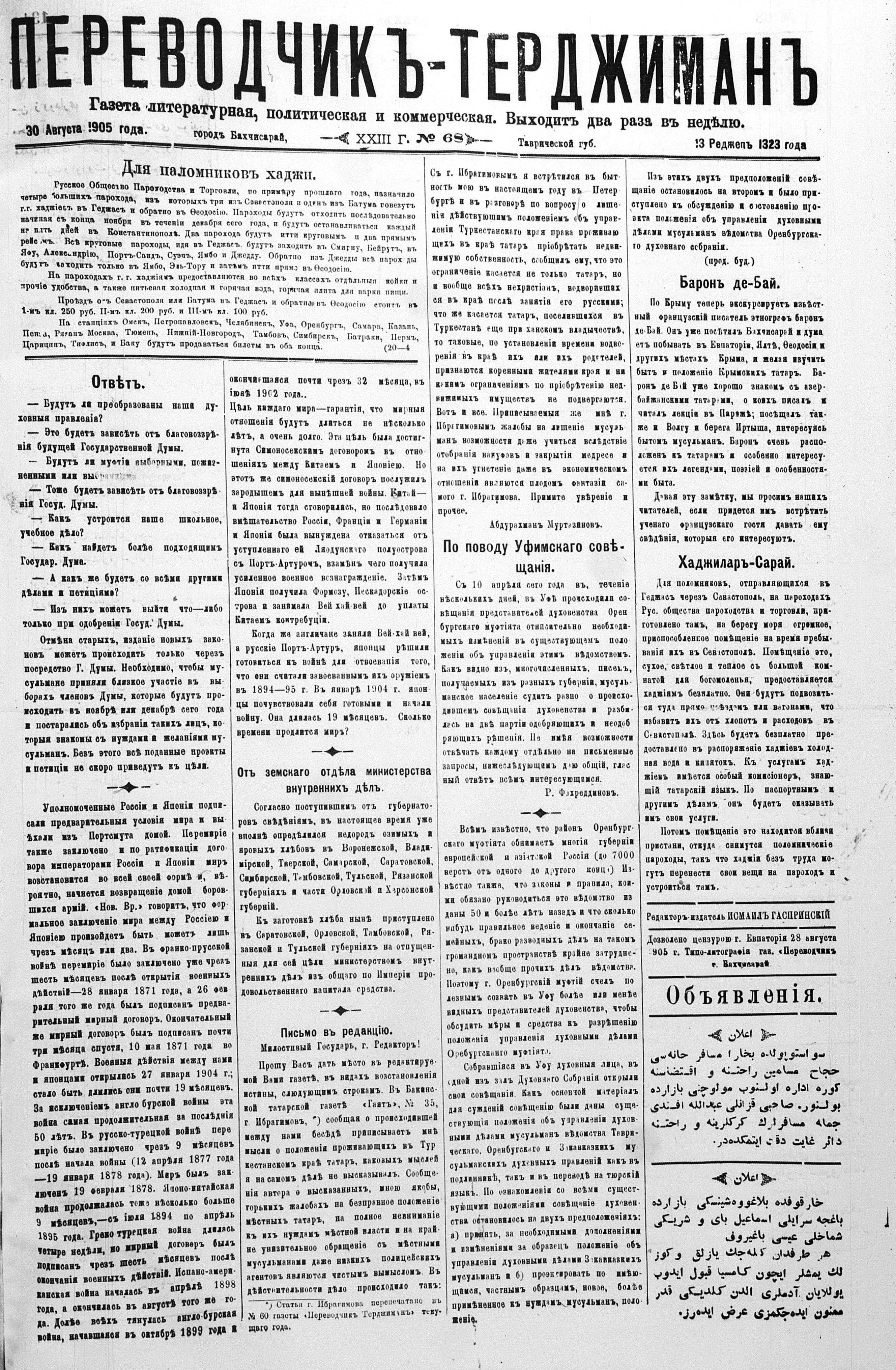 Turkish-Russian newspaper published in Crimea by İsmail Gaspıralı.