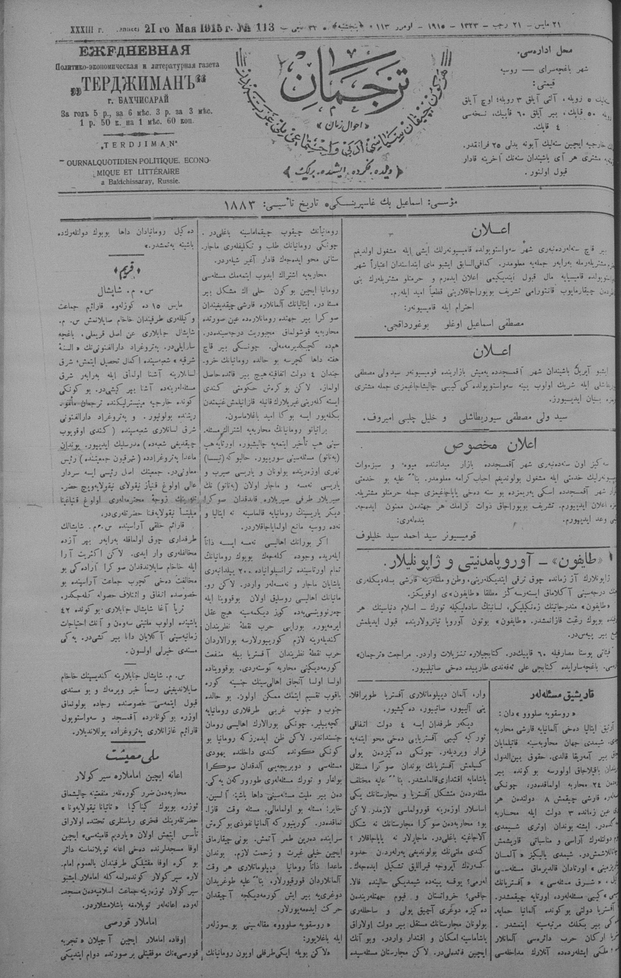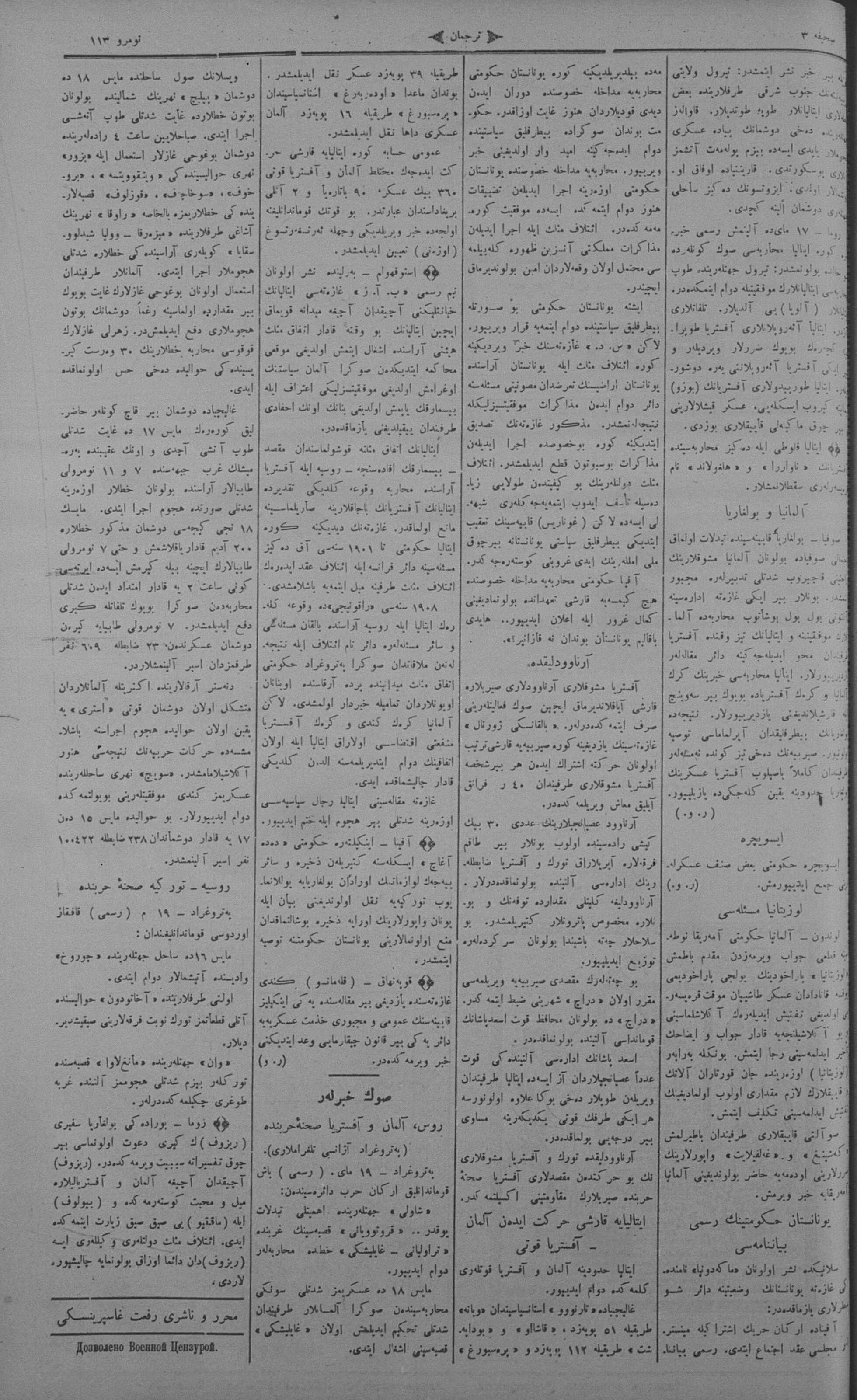 Tercüman, 21 May 1915 Year 33 No 113