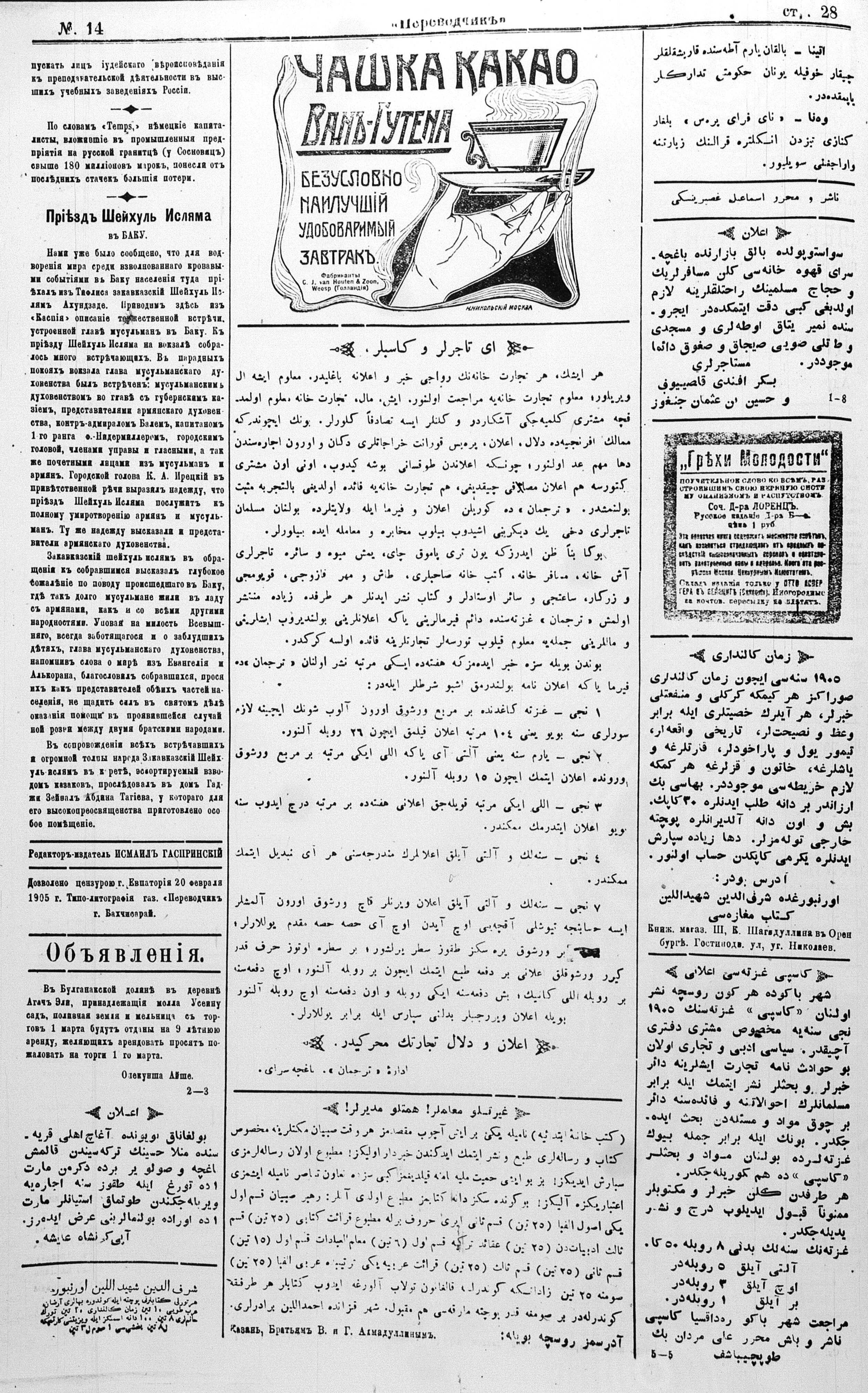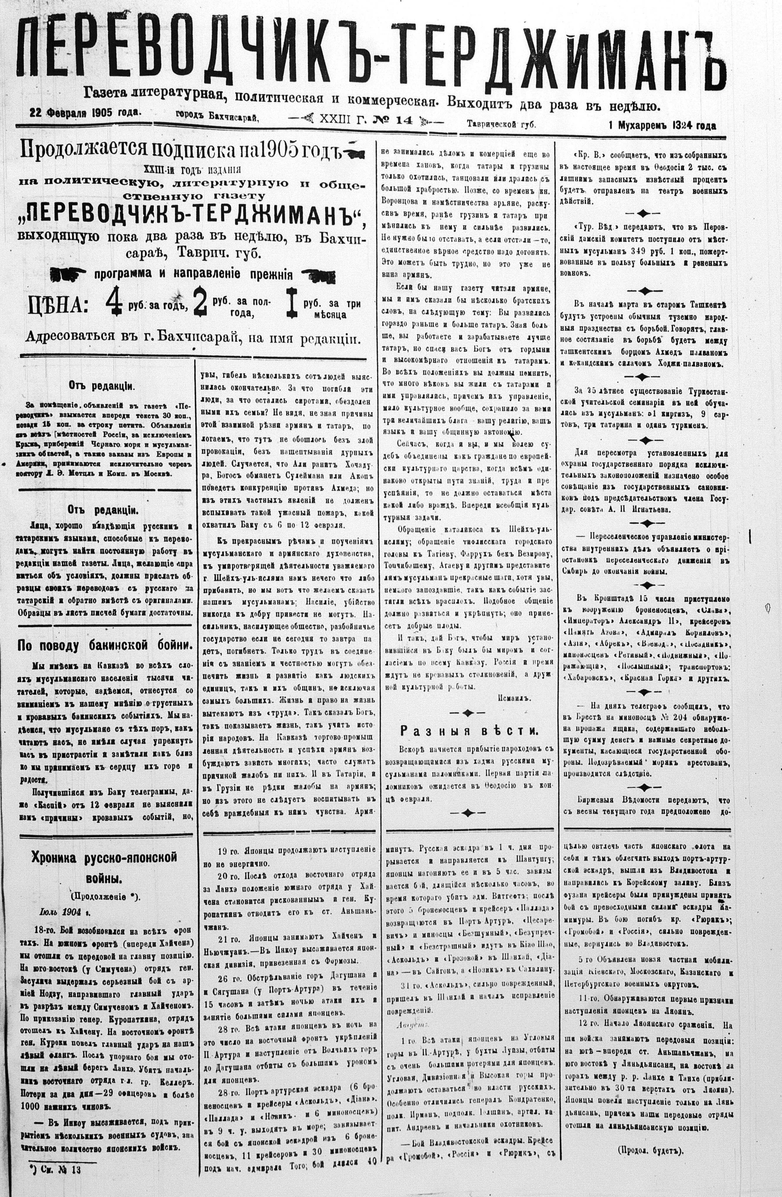 Tercüman, 22 February 1905 Year 23 No 14