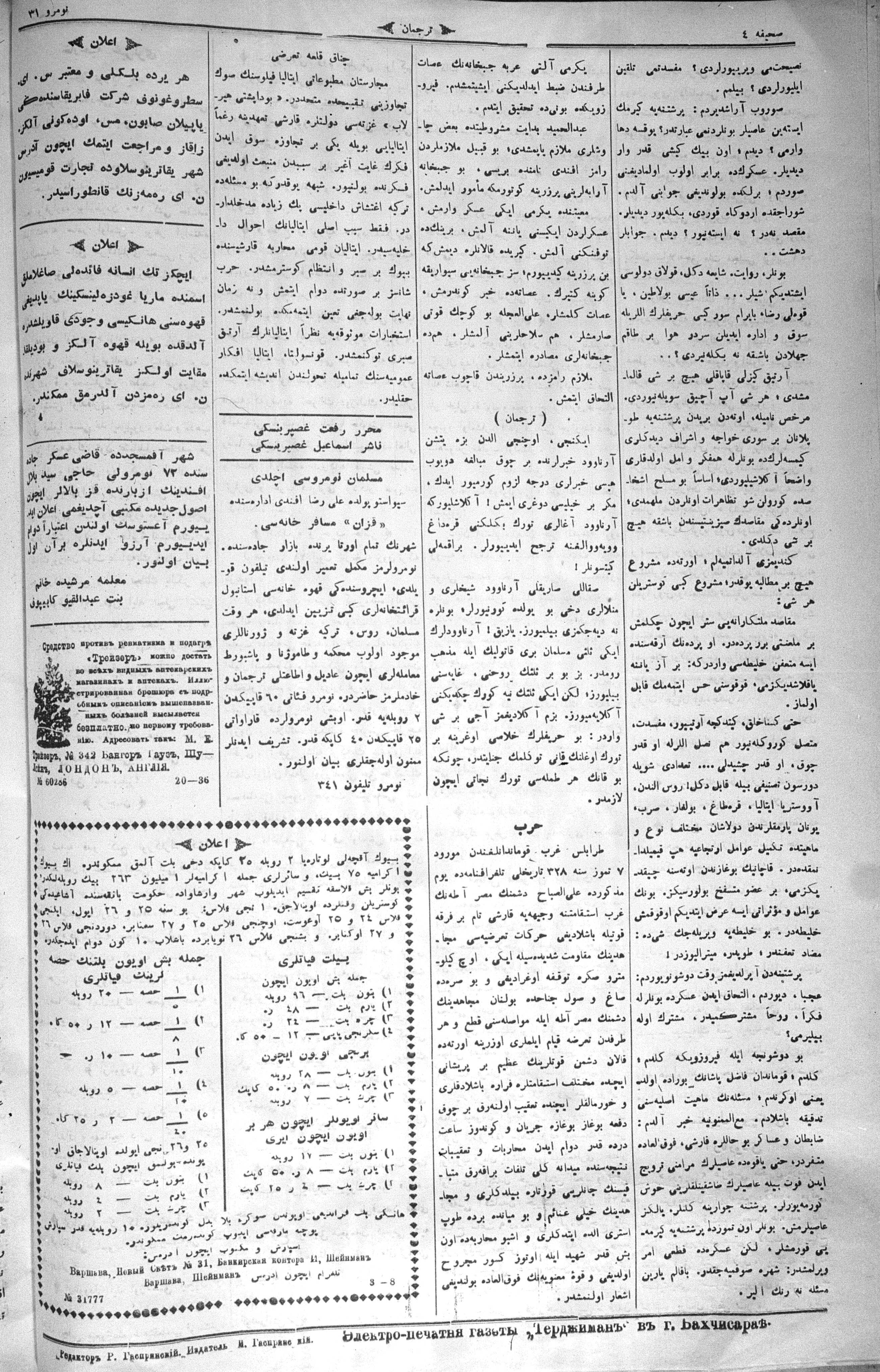 Turkish-Russian newspaper published in Crimea by İsmail Gaspıralı.