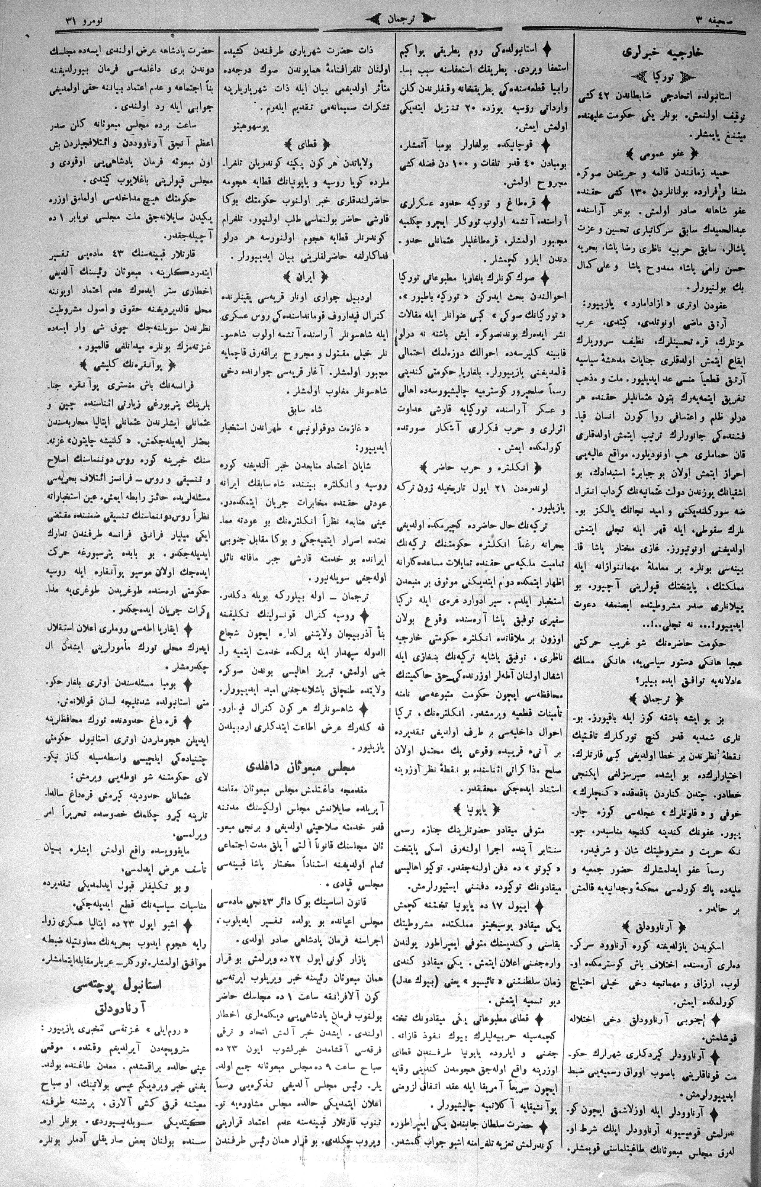 The name of the newspaper changed to Tercüman-ı Ahval-i Zaman in 1905. In 1909, it started to be published under its first name, Tercüman.