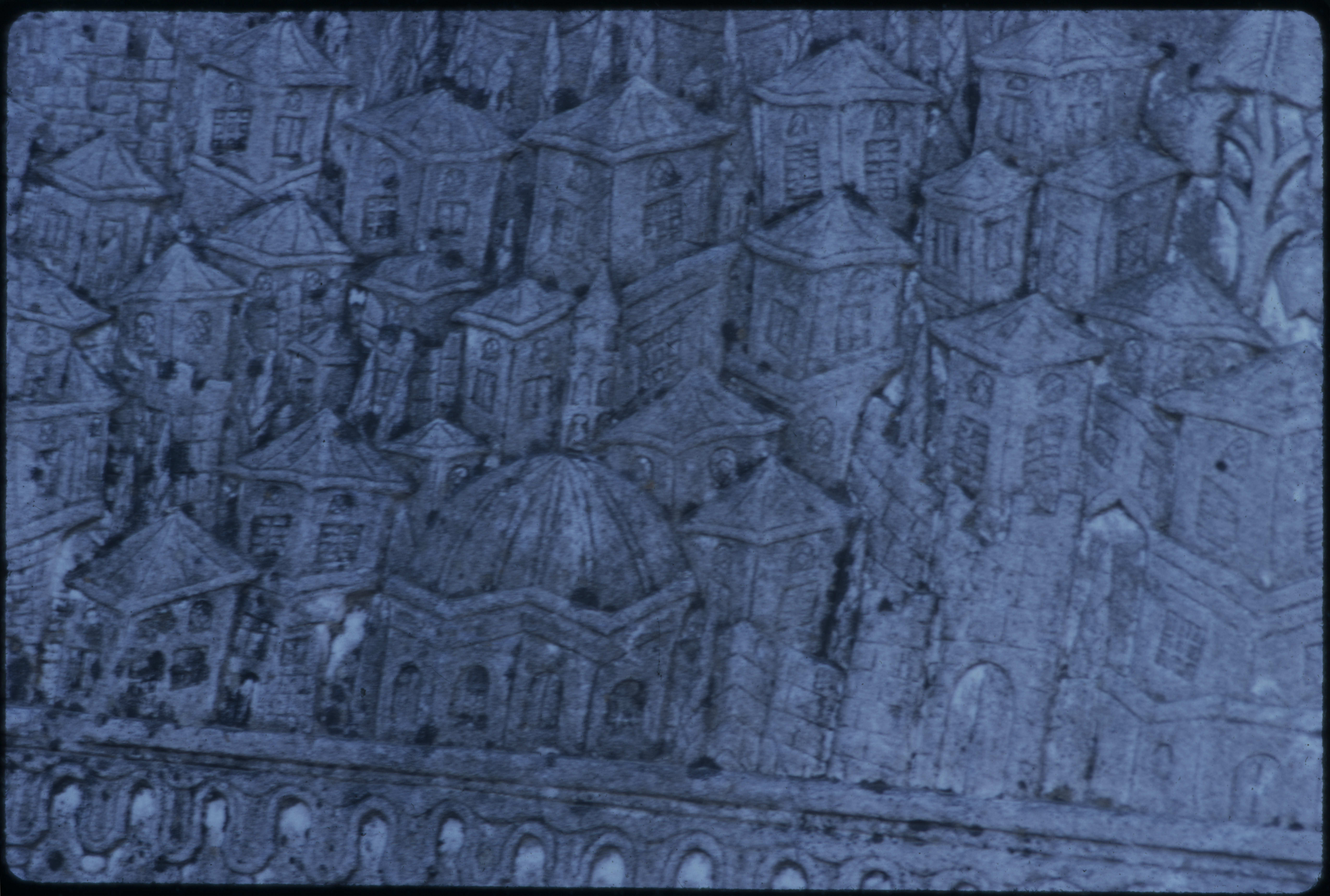 İzmir-Agora'da bir şehir görüntüsü nakşedilmiş kıymetli ve orijinal eski bir mezar taşı
