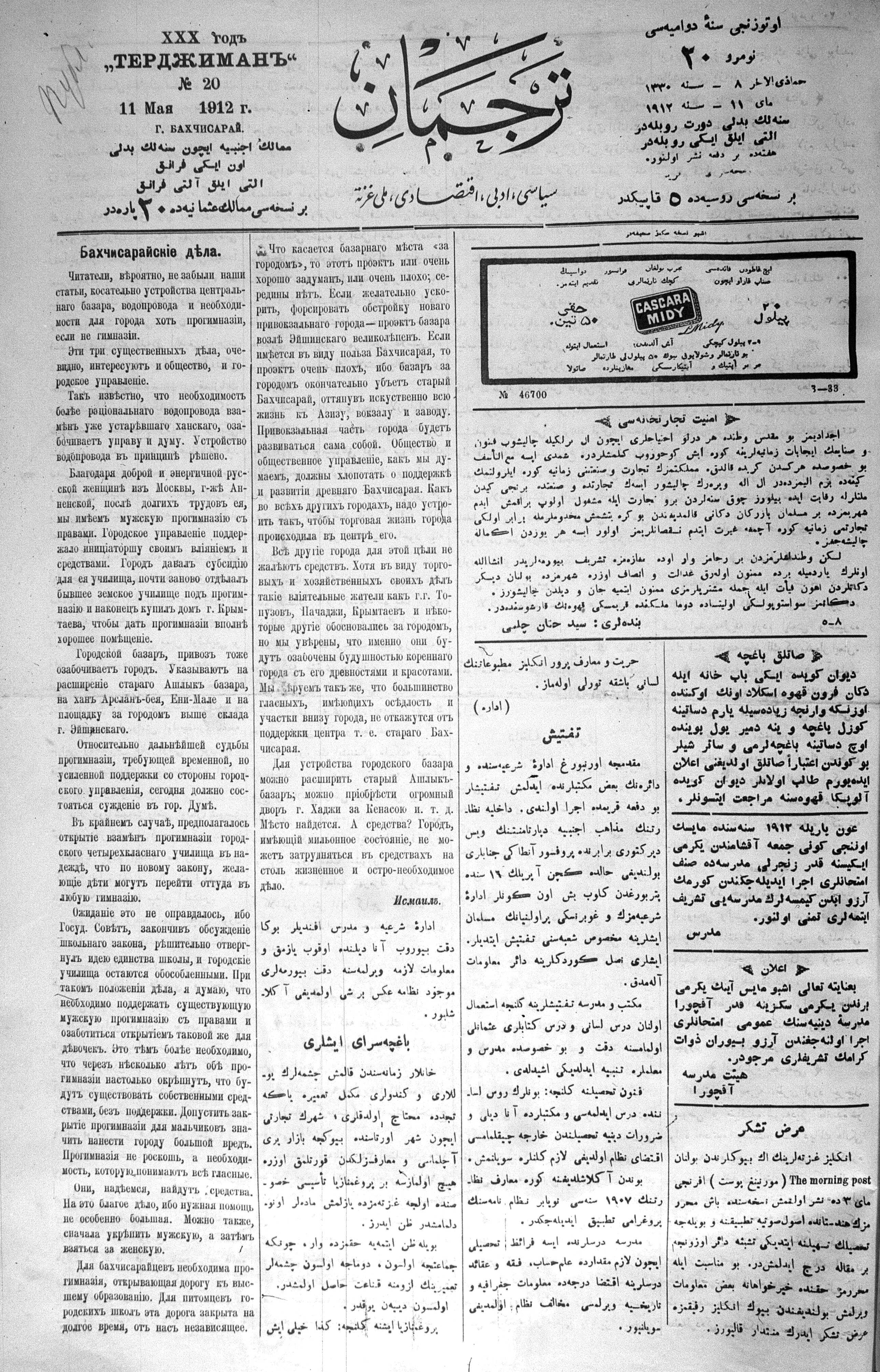 Tercüman, 11 May 1912 Year 30 No 20