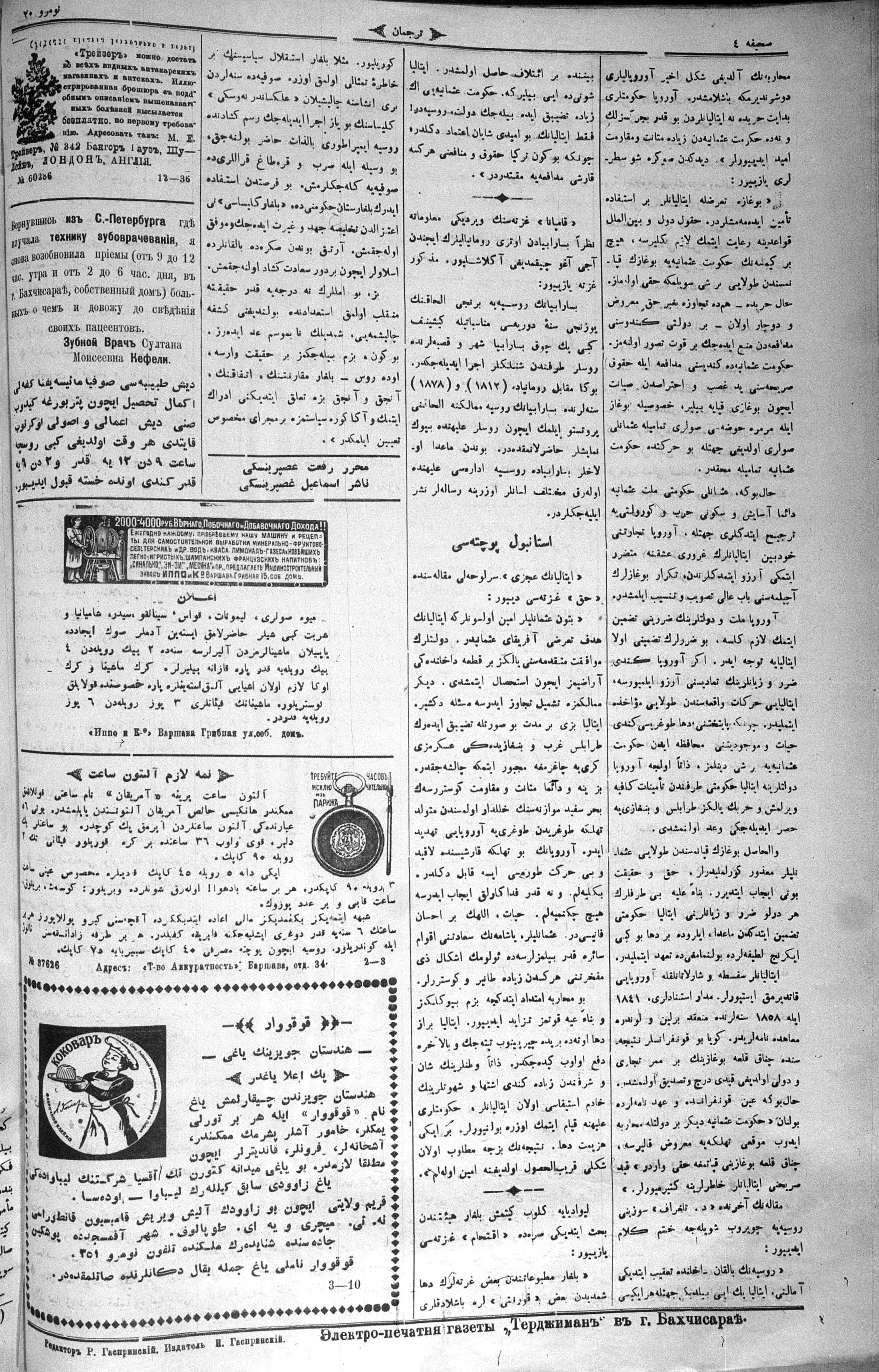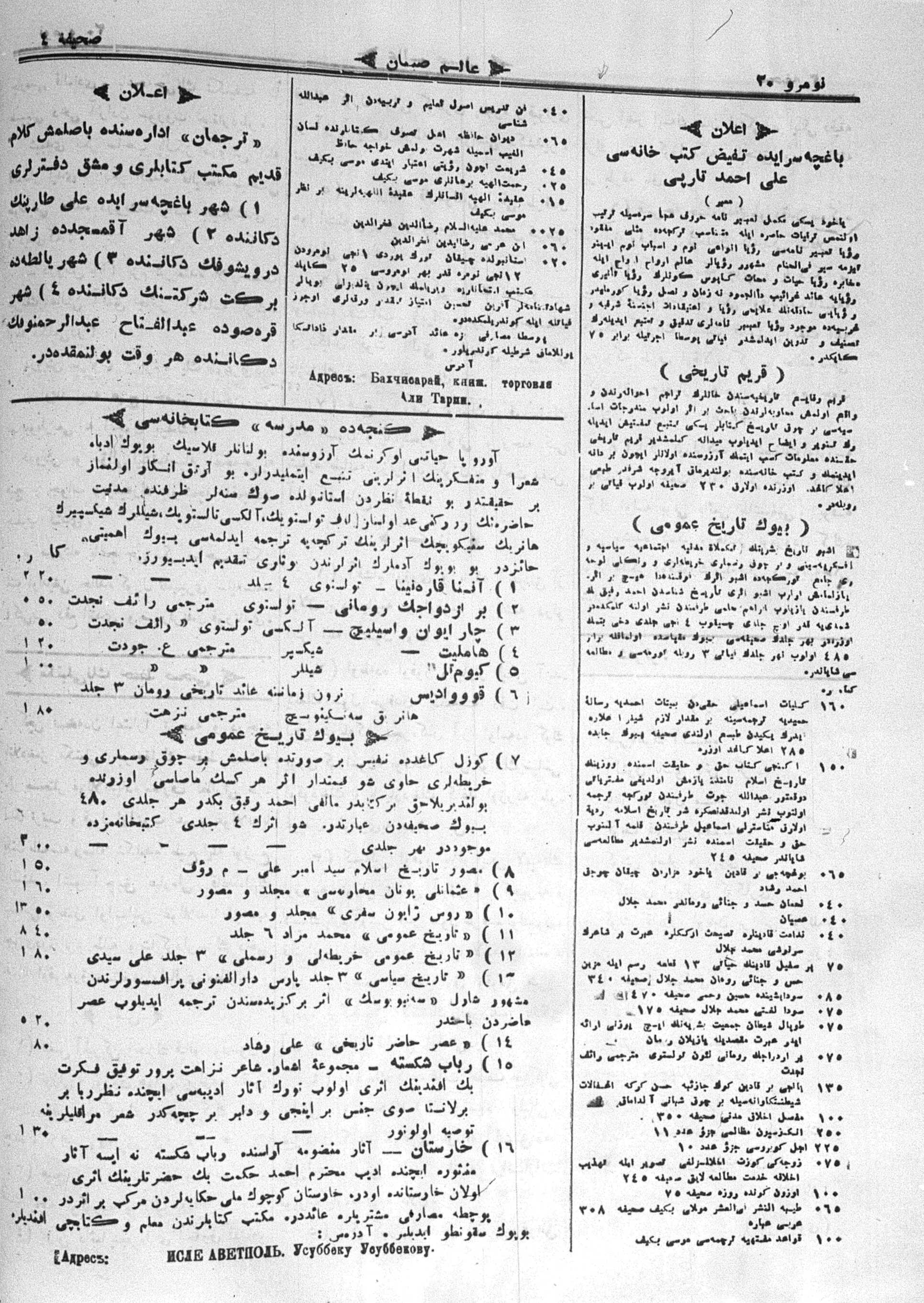Turkish-Russian newspaper published in Crimea by İsmail Gaspıralı.
