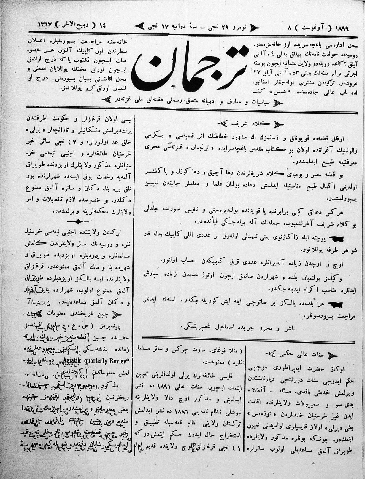 The name of the newspaper changed to Tercüman-ı Ahval-i Zaman in 1905. In 1909, it started to be published under its first name, Tercüman.