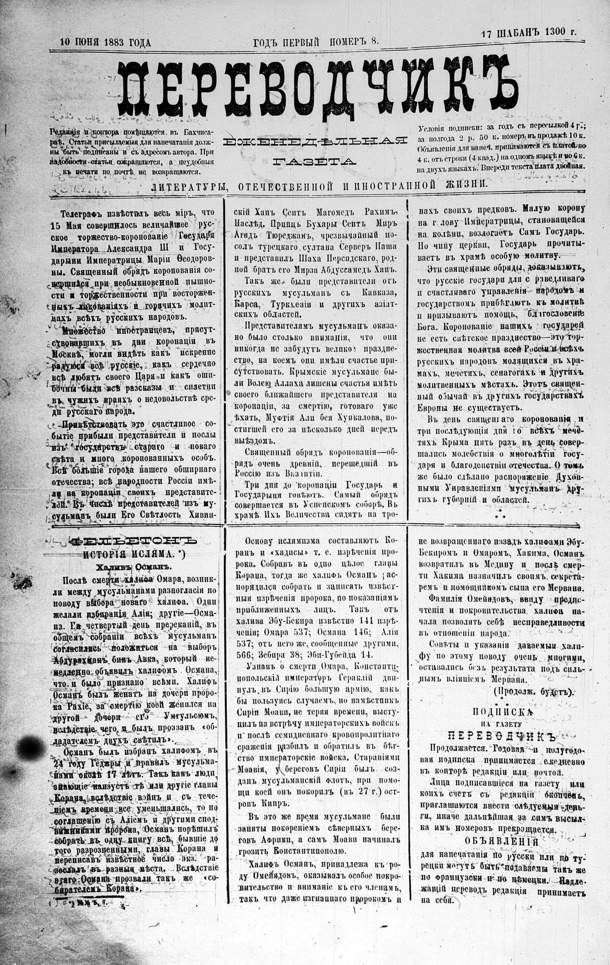 Turkish-Russian newspaper published in Crimea by İsmail Gaspıralı.