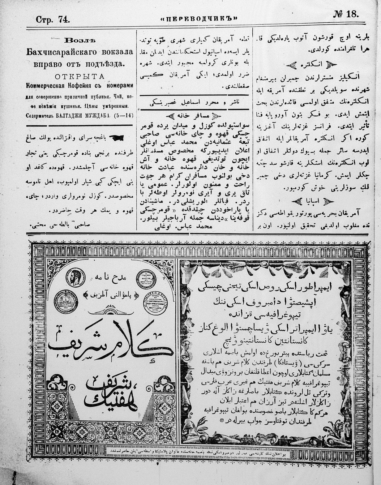 Turkish-Russian newspaper published in Crimea by İsmail Gaspıralı.