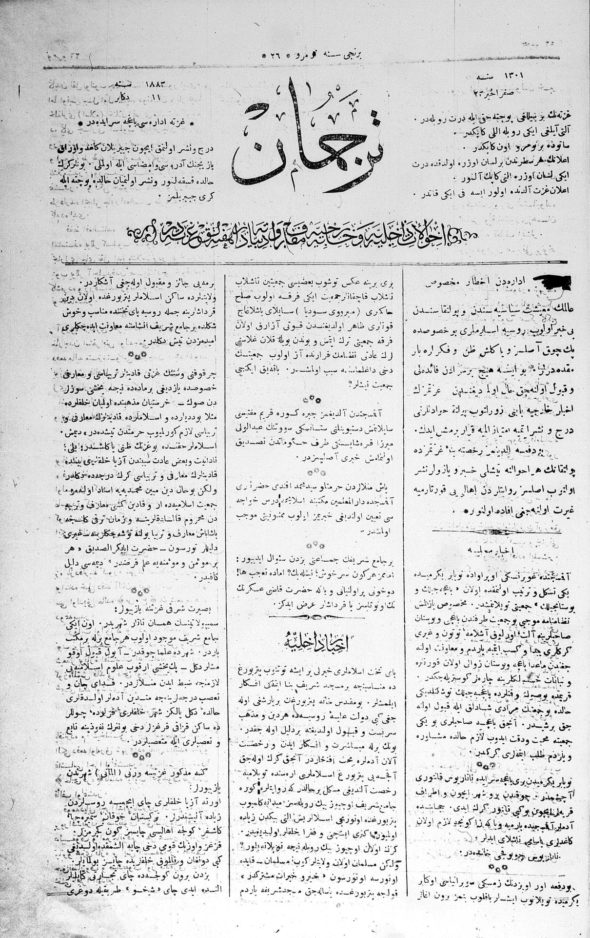 Tercüman, 11 December 1883 Year 1 No 26