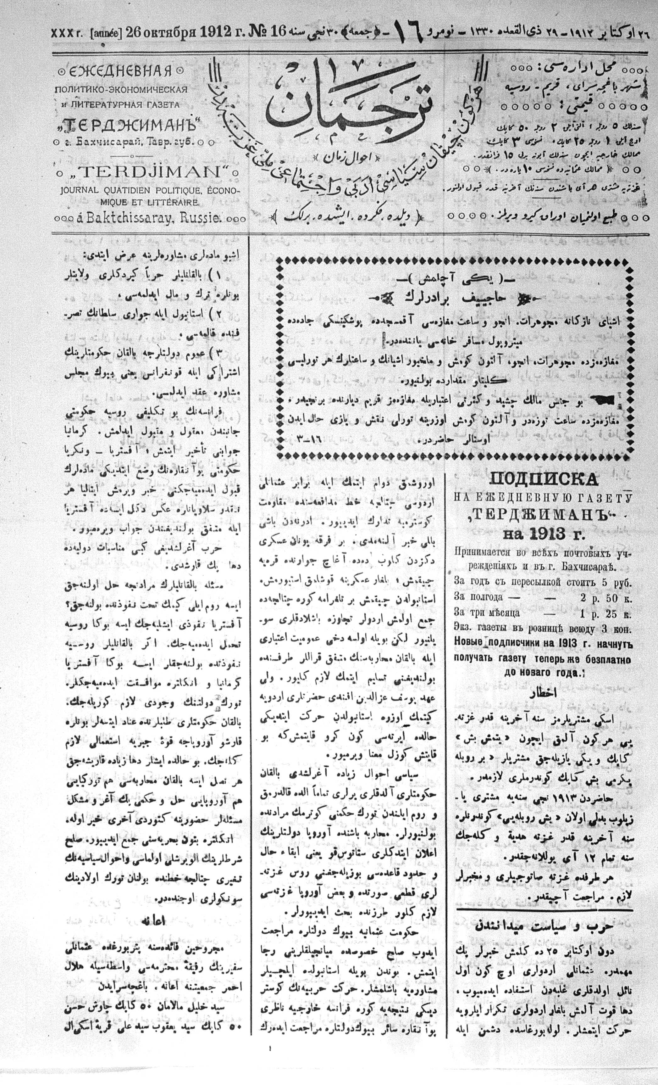 Tercüman, 26 October 1912 Year 30 No 16