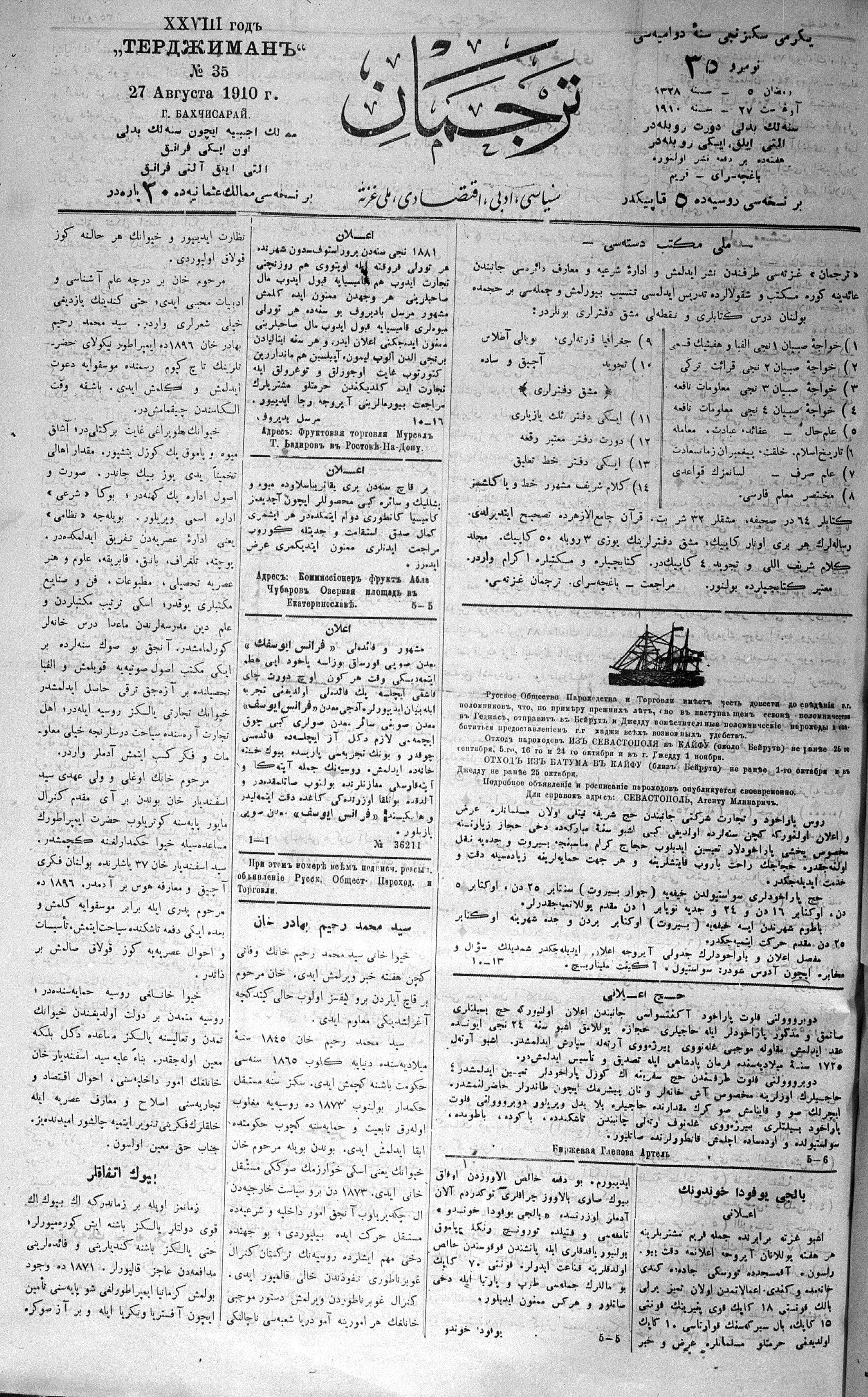 Tercüman, 27 August 1910 Year 28 No 35