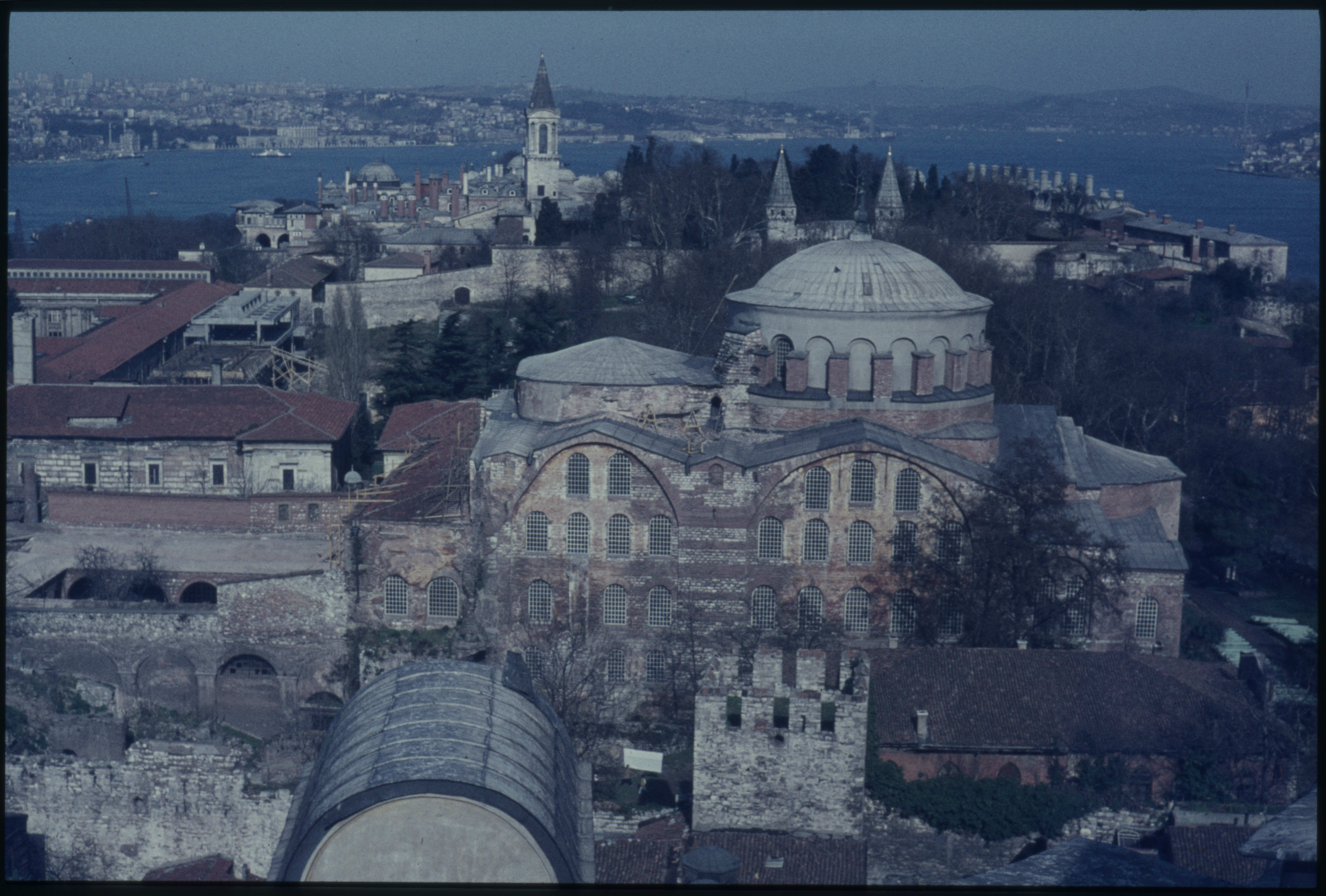 İstanbul-Ayasofya Camii'nin kubbesinden Topkapı Sarayı ve Aya İreni Kilisesi