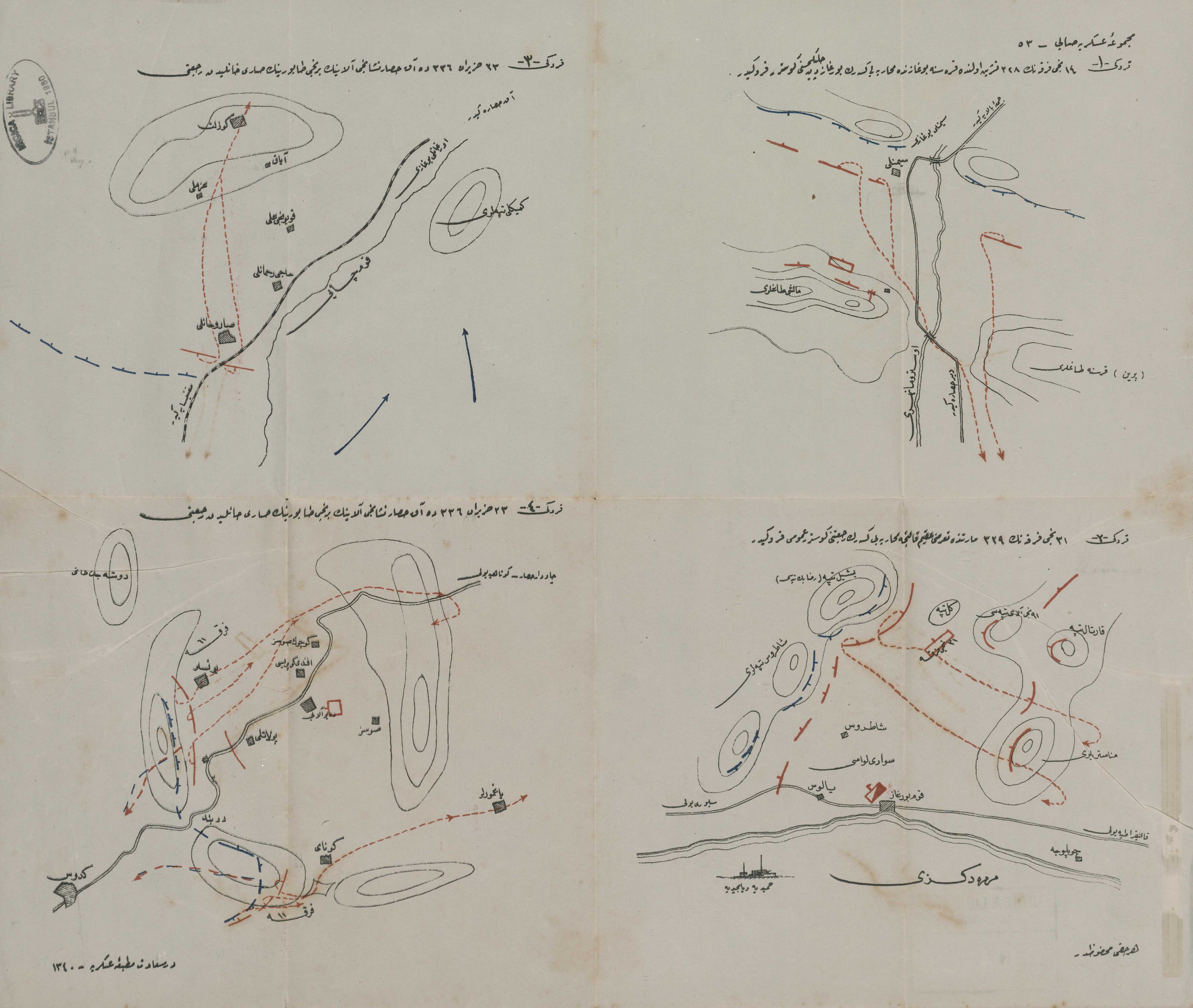 Kroki 1: Ondördüncü Fırka`nın 328 Teşrin-i Evveli`nde Karsene Boğazı`nda muharebeyi keserek Burgaz`dan çekilmesini gösterir krokidir.- Kroki 2: Onüçüncü Fırka`nın 329 Mart`ında taarruzu skim kalınca muharebeyi keserek ricatini gösterir umumi krokidir.- Kroki 3: 23 Haziran 336`da Akhisar Nişancı Alayı`nın Birinci Taburunun Sarıhanlı`dan ricati.- Kroki 4: 23 Haziran 336`da Akhisar Nişancı Alayı`nın Birinci Taburunun Sarıhanlı`dan ricati.