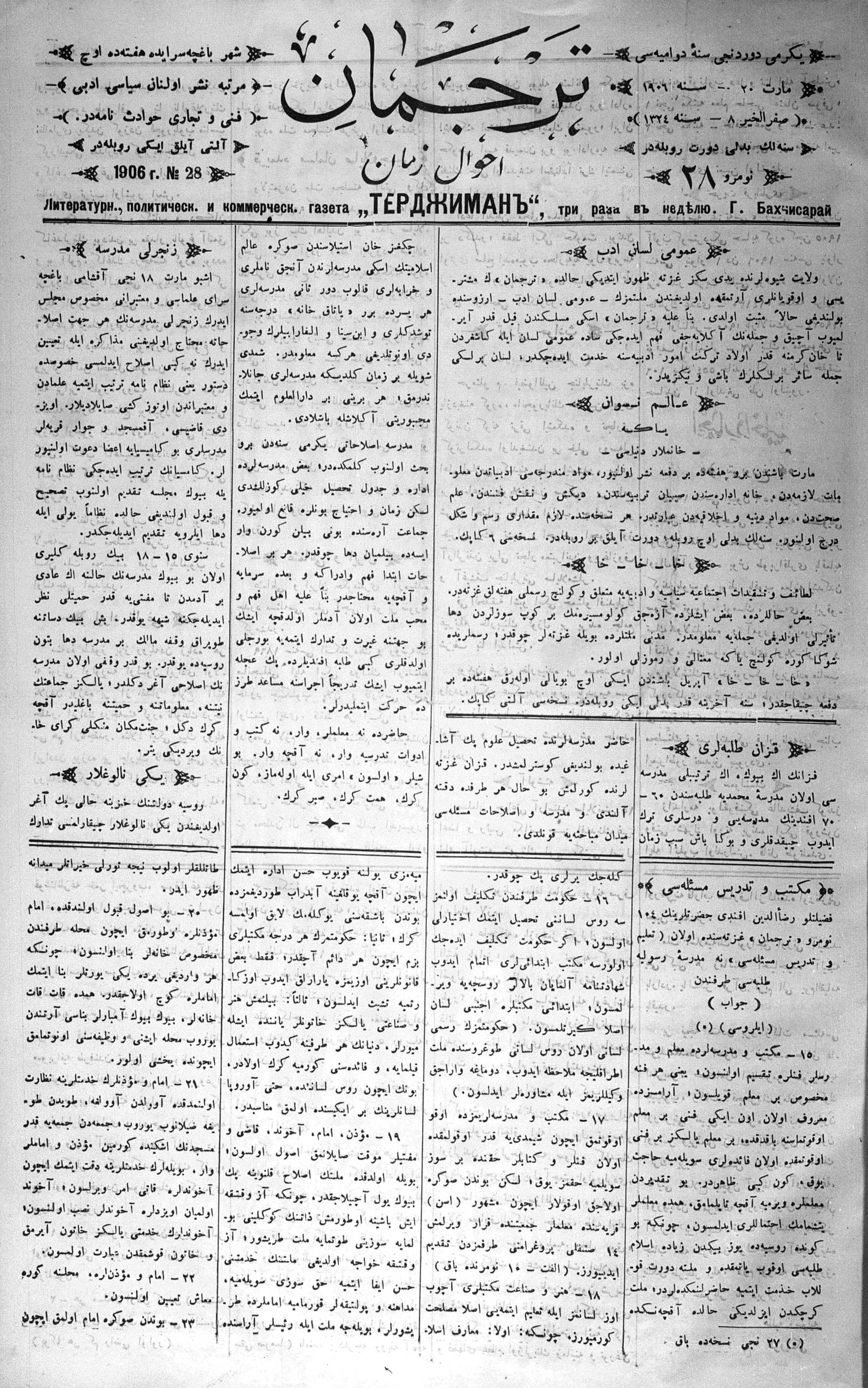Turkish-Russian newspaper published in Crimea by İsmail Gaspıralı.