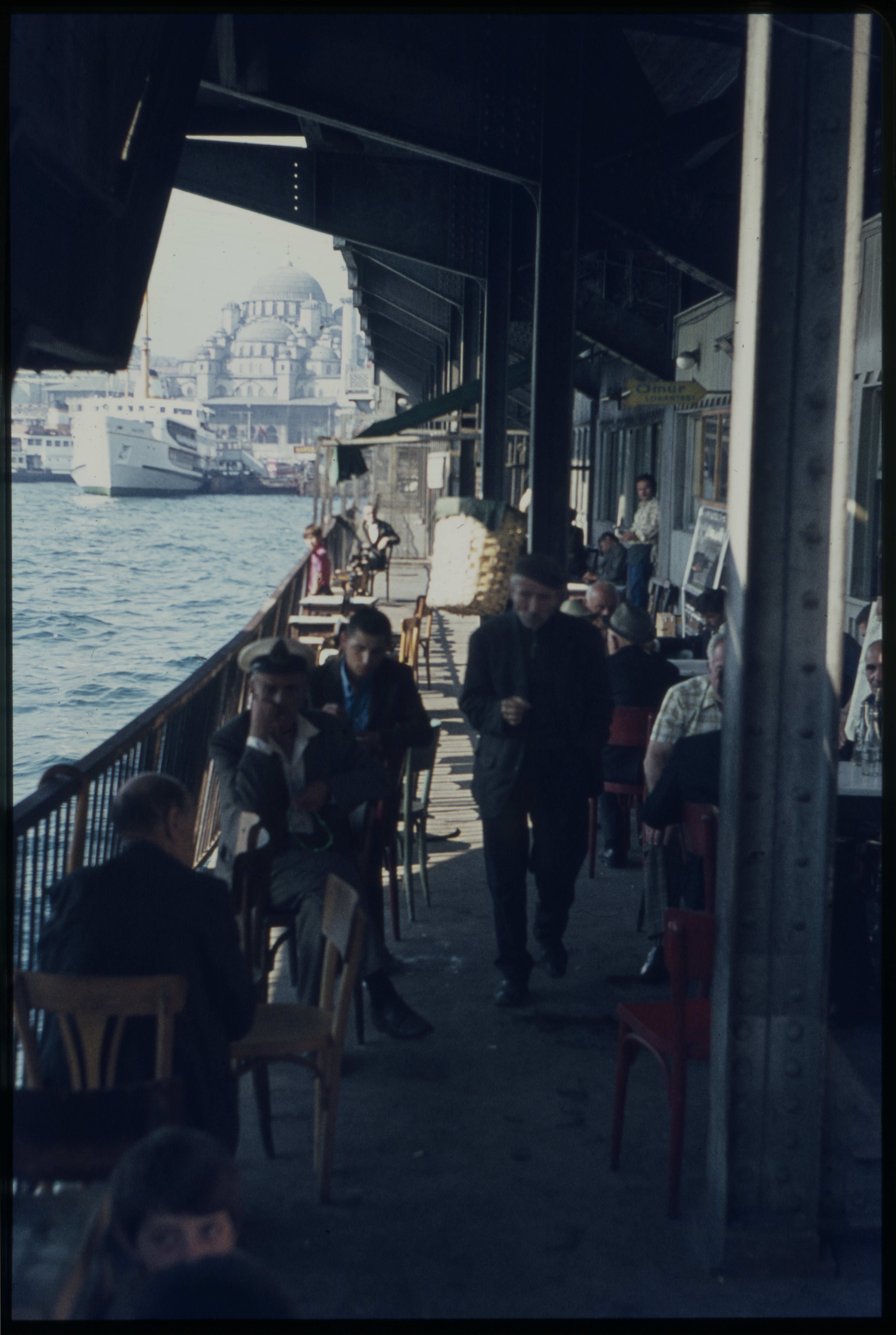 İstanbul-Yanmadan önce Galata Köprüsü'nün altındaki kahvelerden ve Yeni Camii'den görünüş
