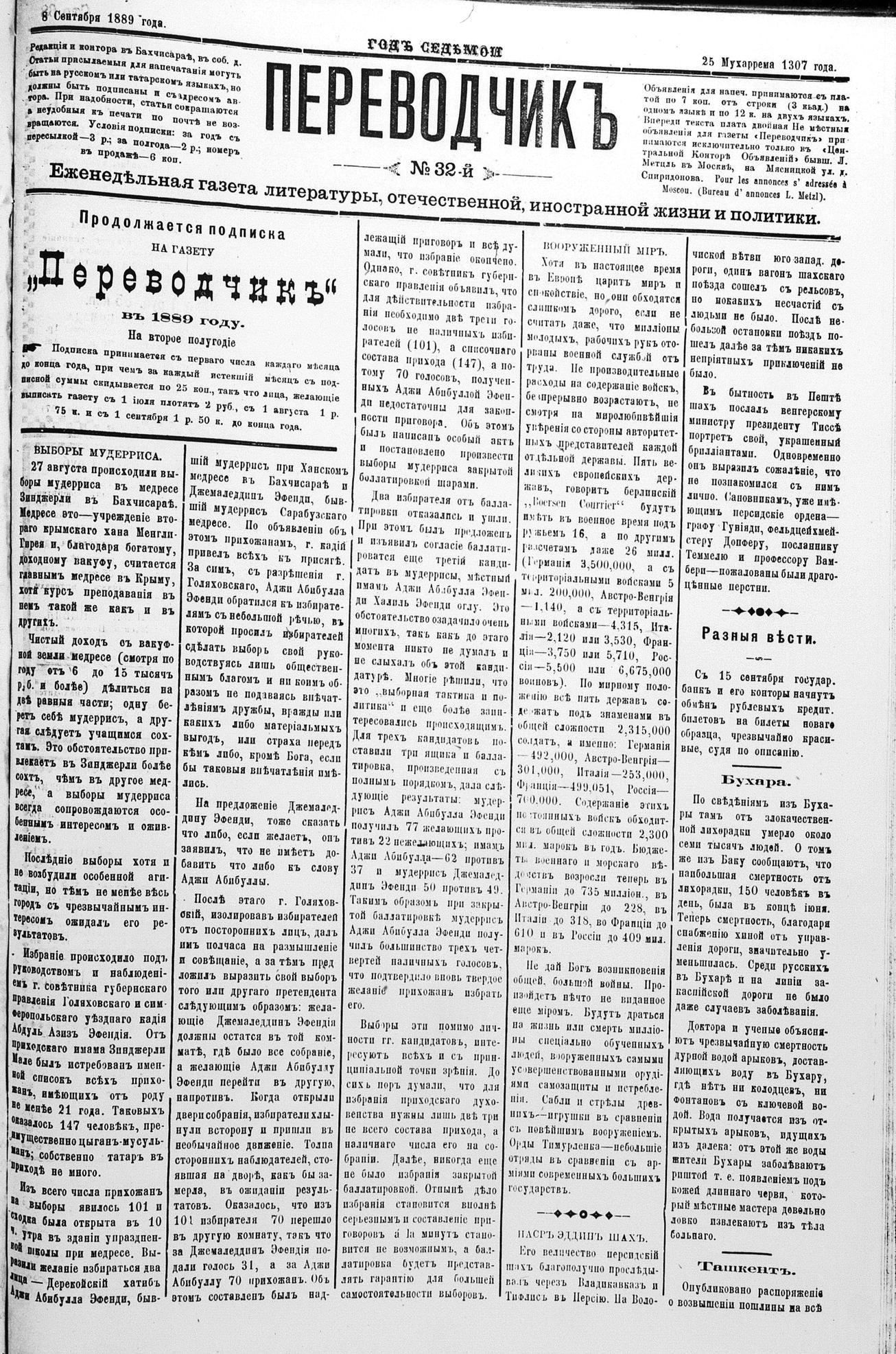 Tercüman, 08 September 1889 Year 7 No 32