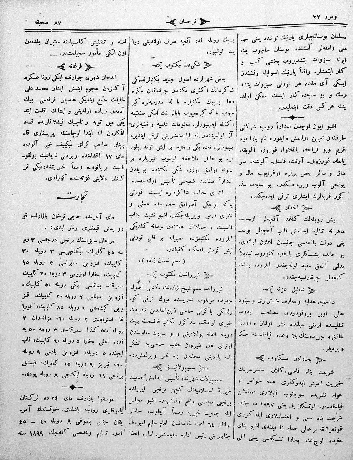 The name of the newspaper changed to Tercüman-ı Ahval-i Zaman in 1905. In 1909, it started to be published under its first name, Tercüman.