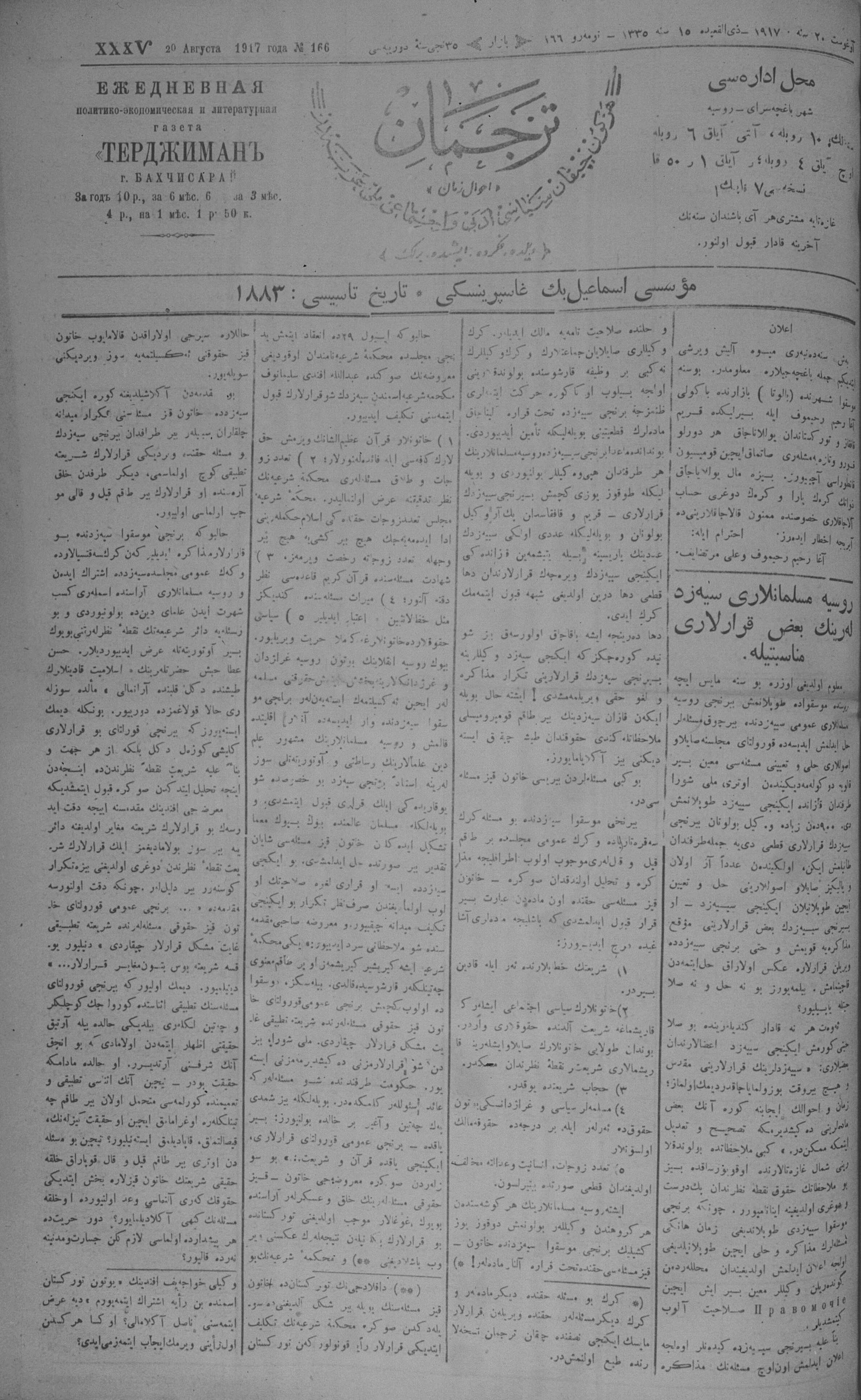 Turkish-Russian newspaper published in Crimea by İsmail Gaspıralı.