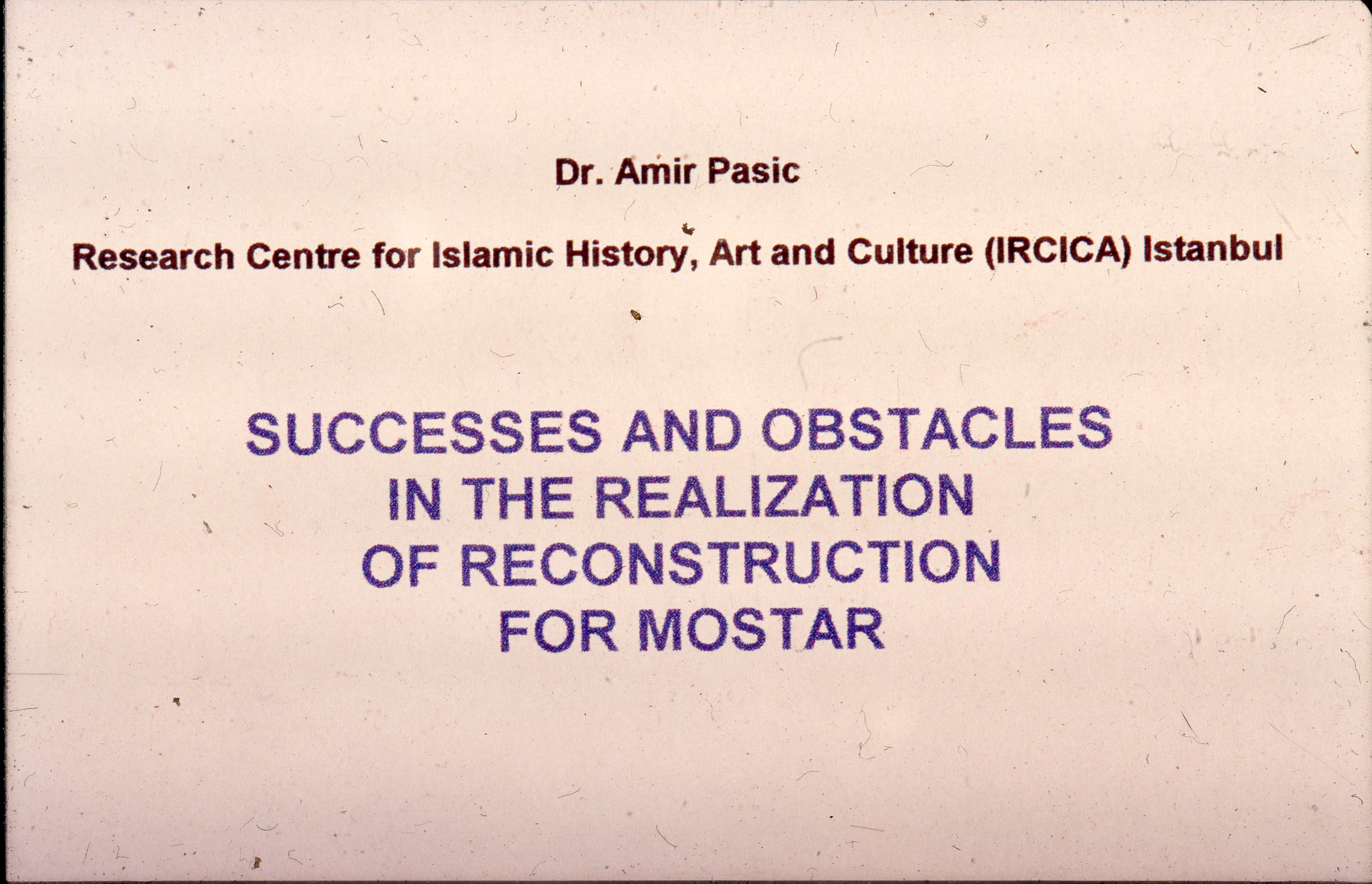Presentation by Amir Pašić titled Successes and Obstacles in the Realization of Reconstruction for Mostar