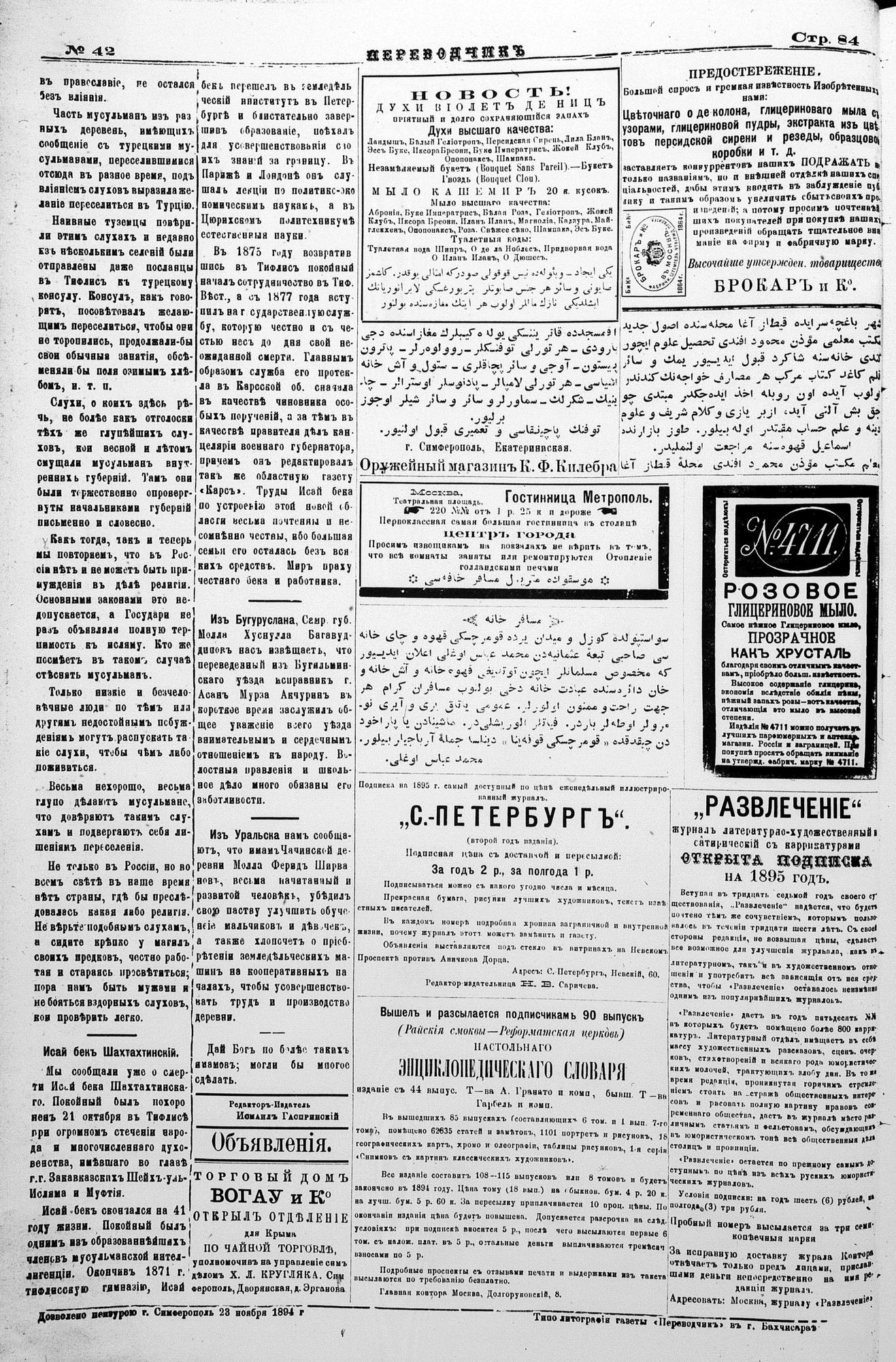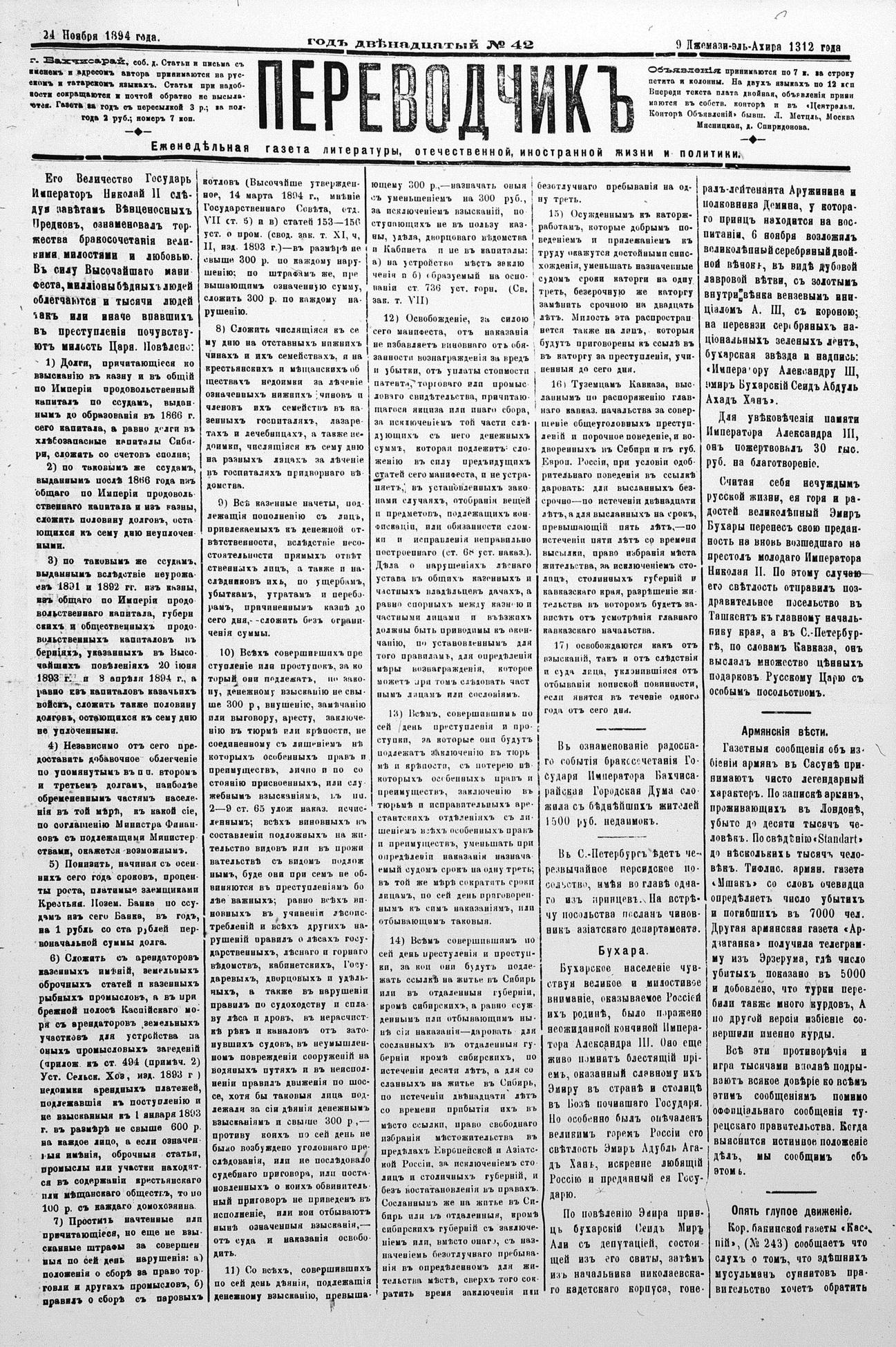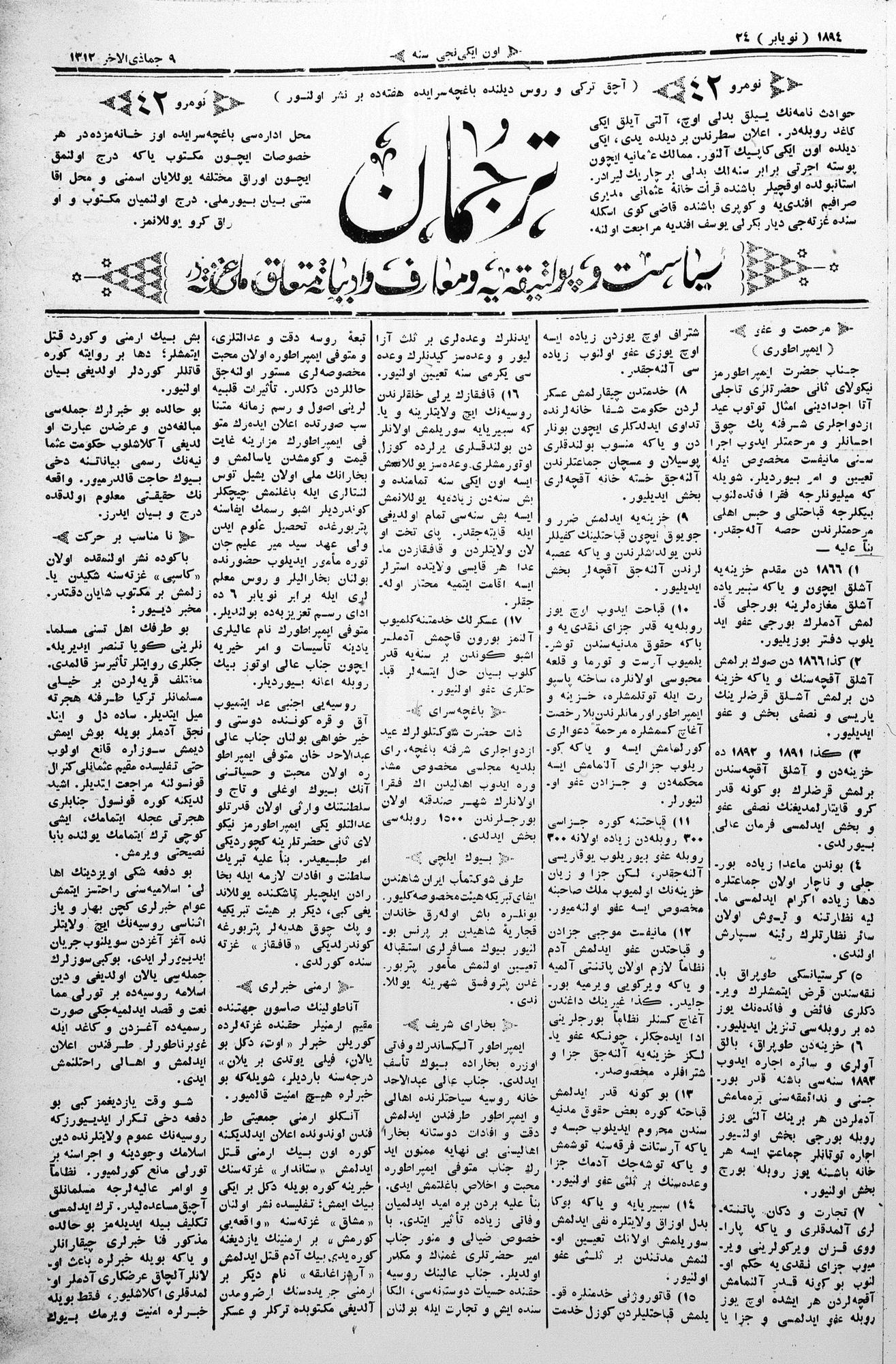 Tercüman, 24 November 1894 Year 12 No 42