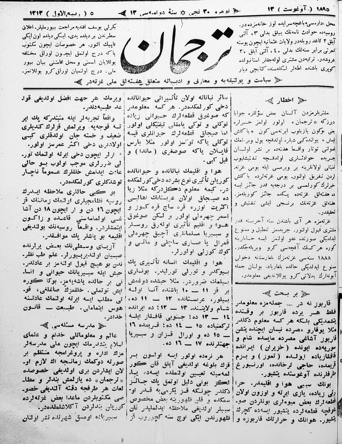 Tercüman, 13 August 1895 Year 13 No 30