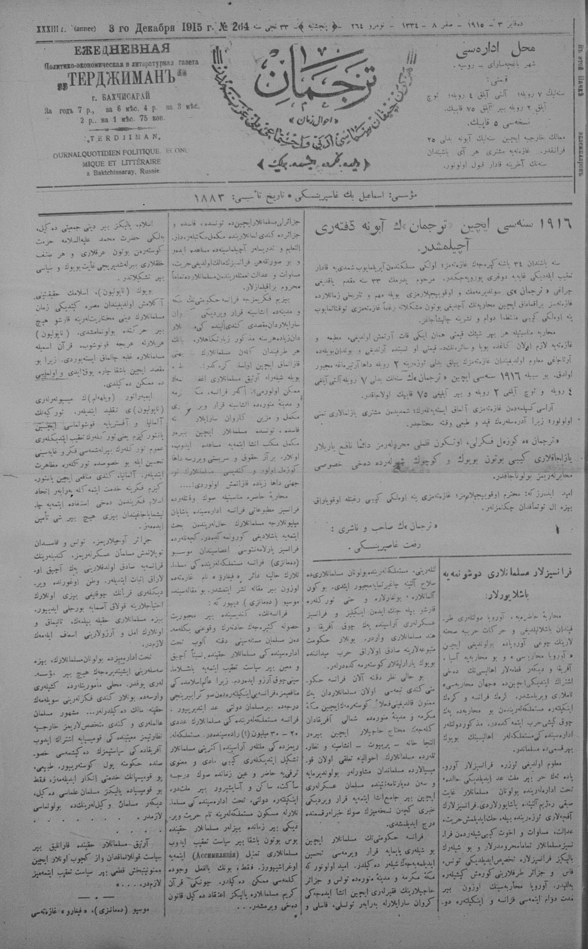 Turkish-Russian newspaper published in Crimea by İsmail Gaspıralı.