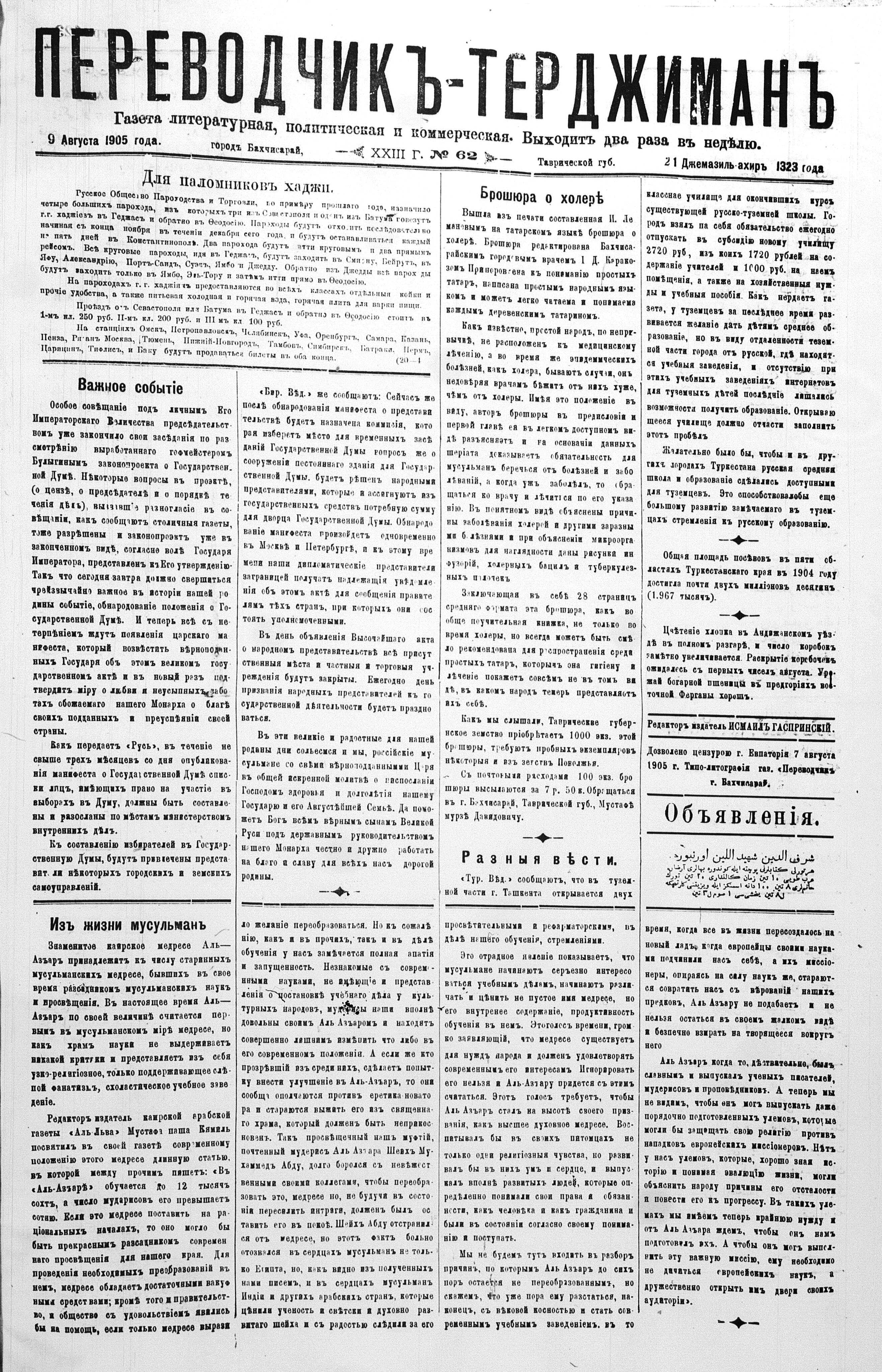 Turkish-Russian newspaper published in Crimea by İsmail Gaspıralı.