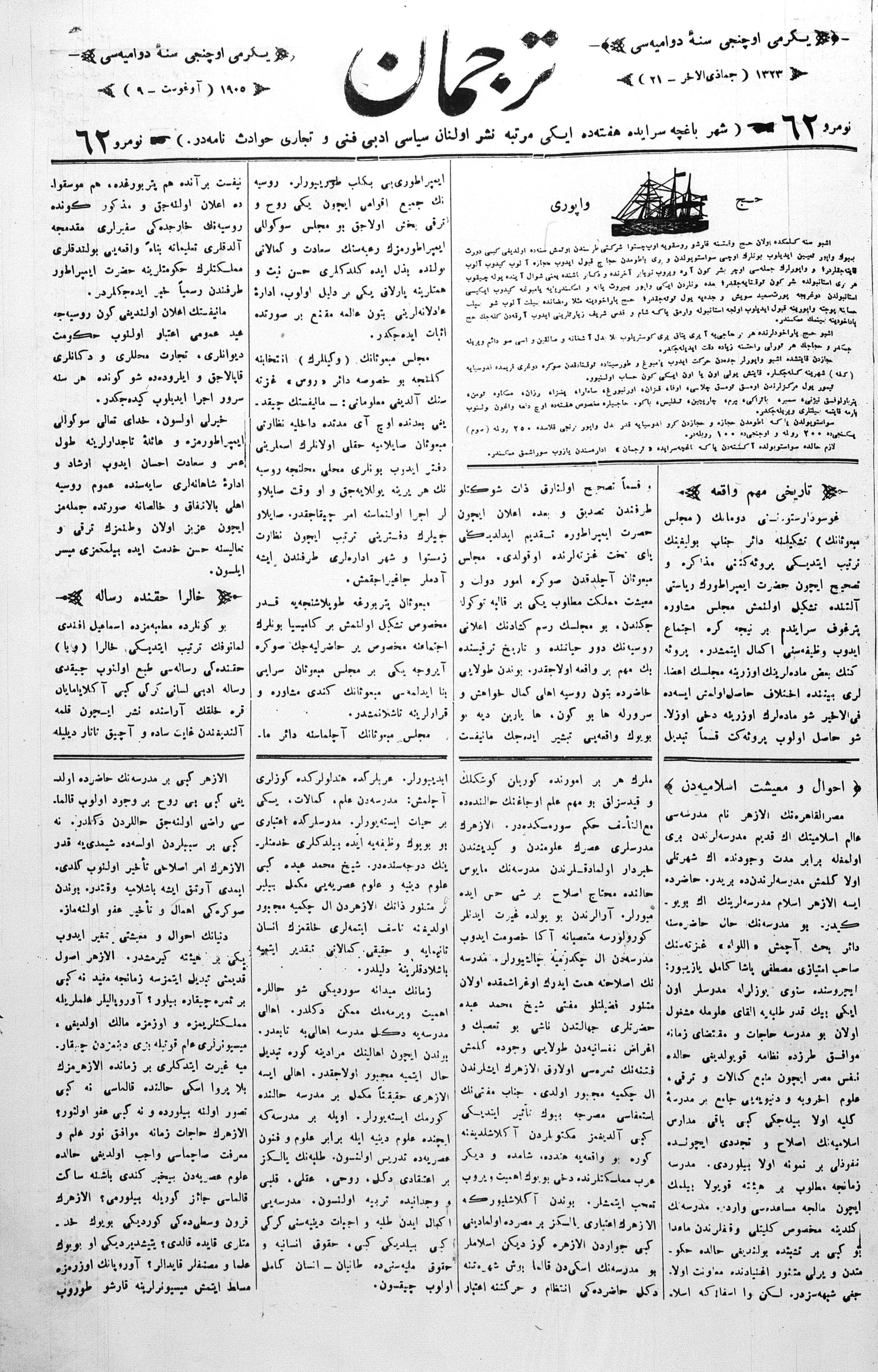 The name of the newspaper changed to Tercüman-ı Ahval-i Zaman in 1905. In 1909, it started to be published under its first name, Tercüman.
