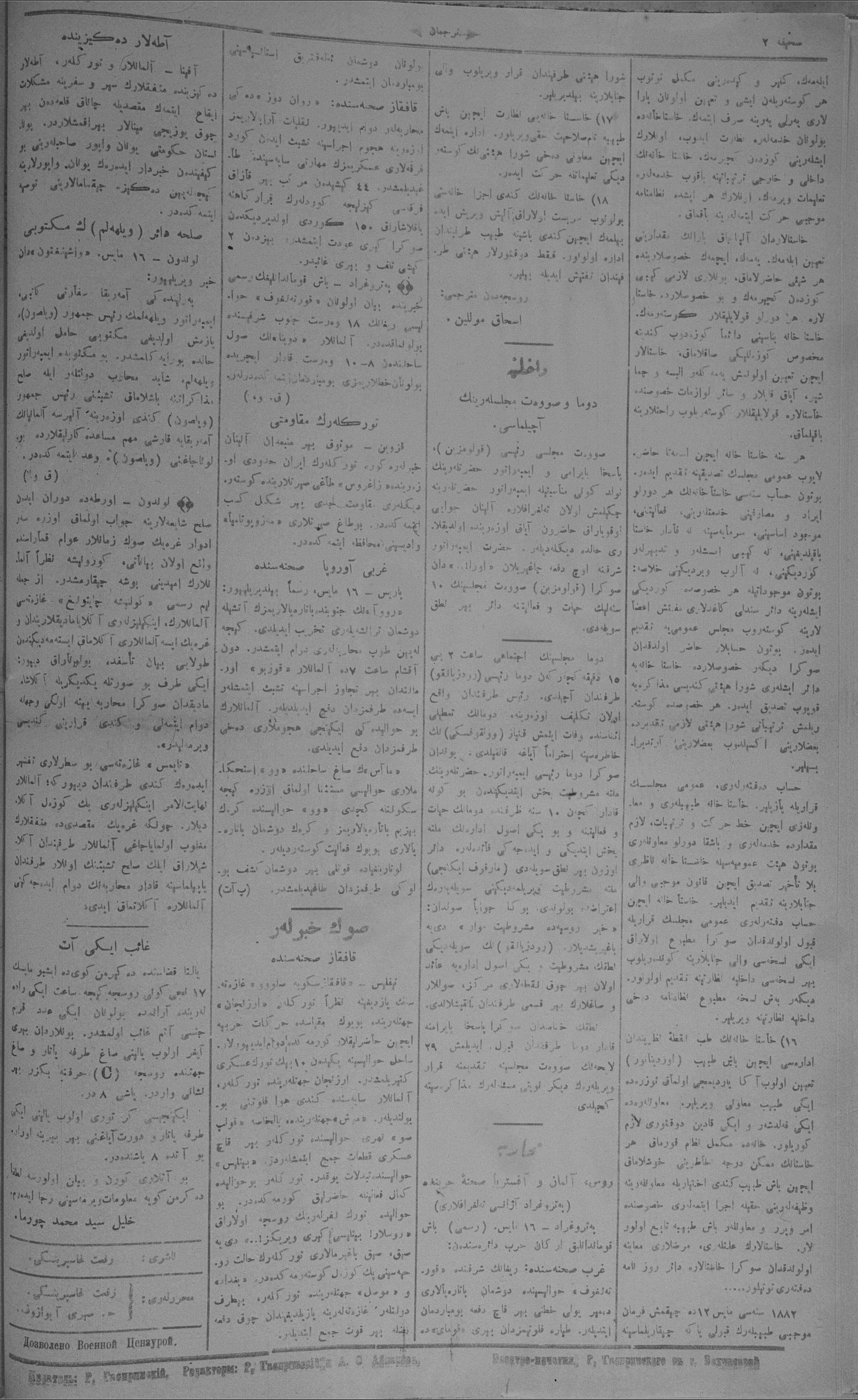 Turkish-Russian newspaper published in Crimea by İsmail Gaspıralı.
