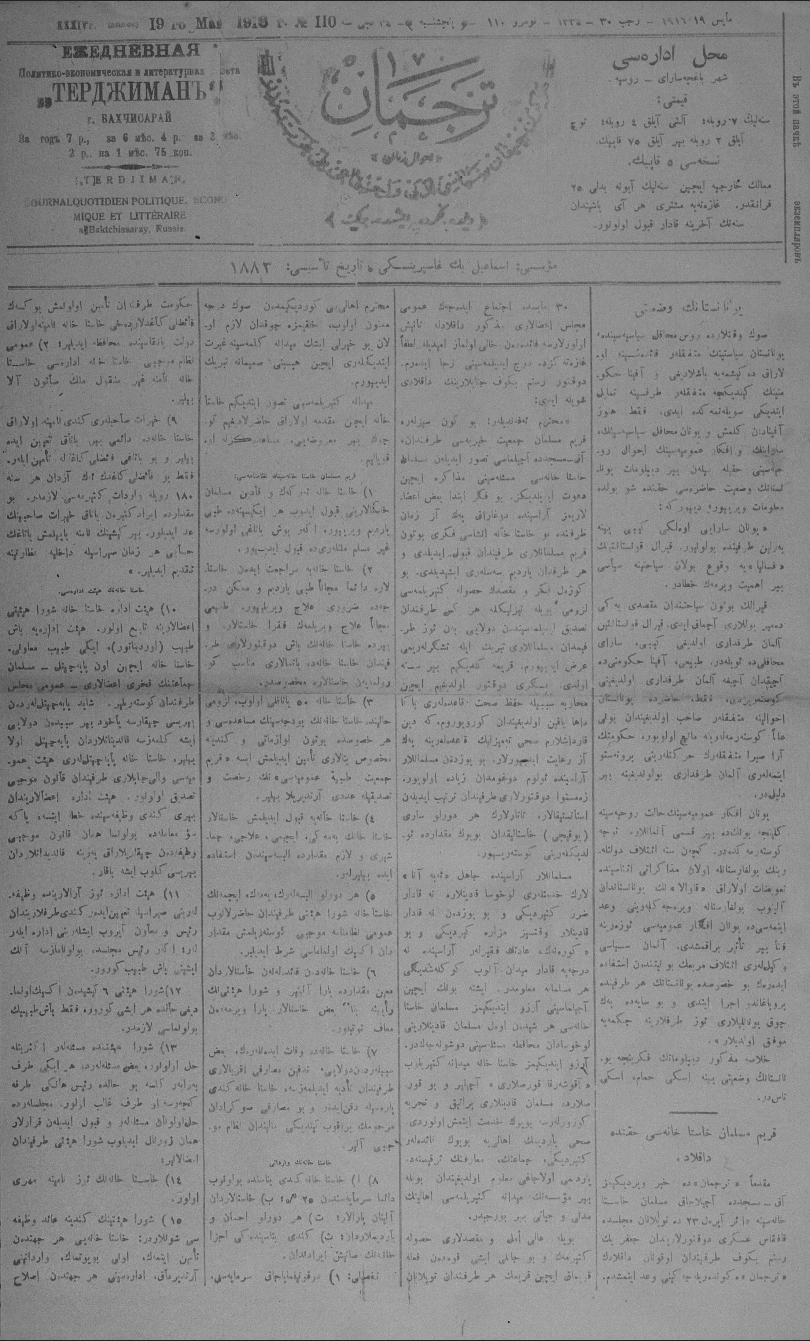 Tercüman, 19 May 1916 Year 34 No 110