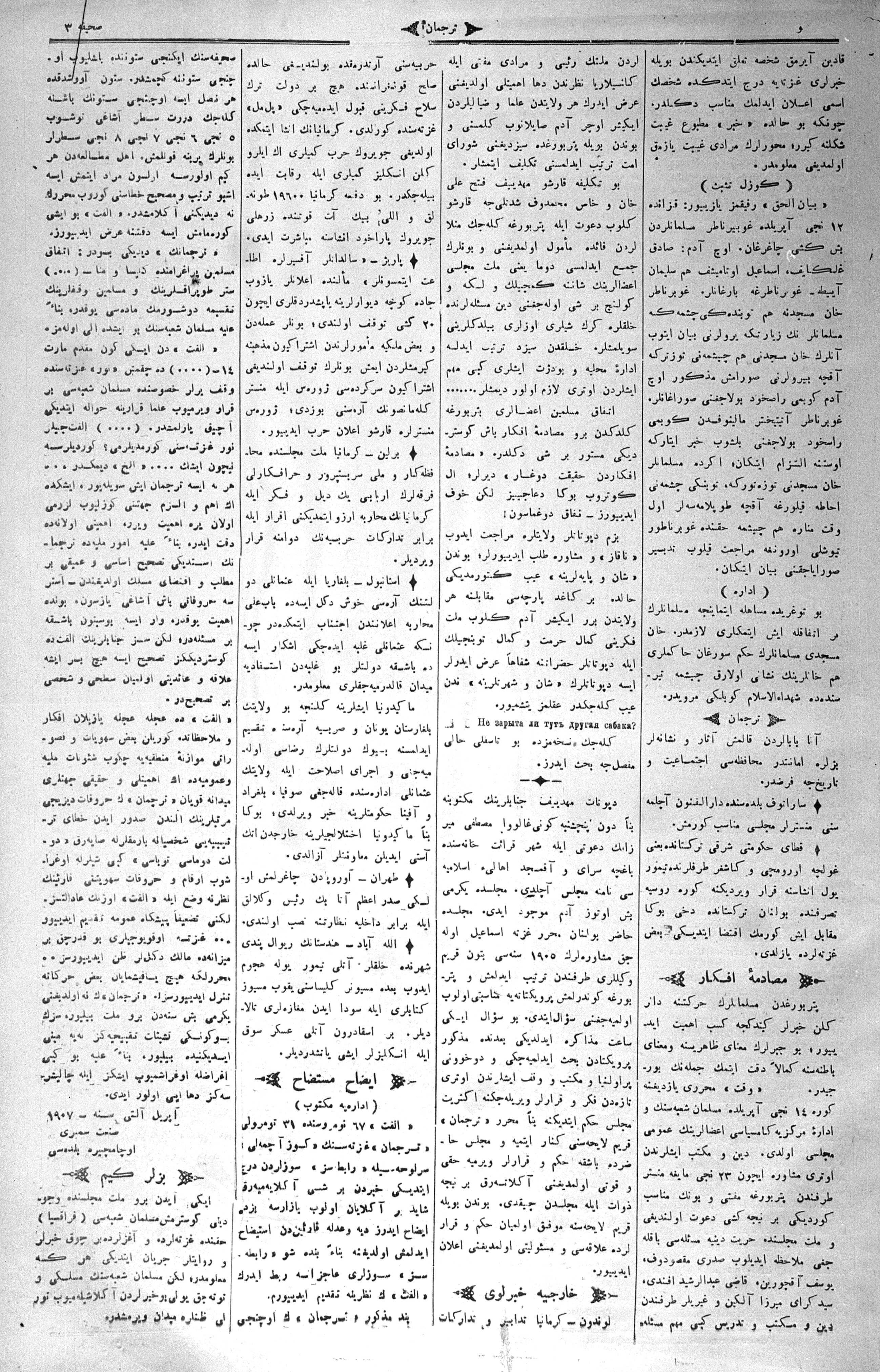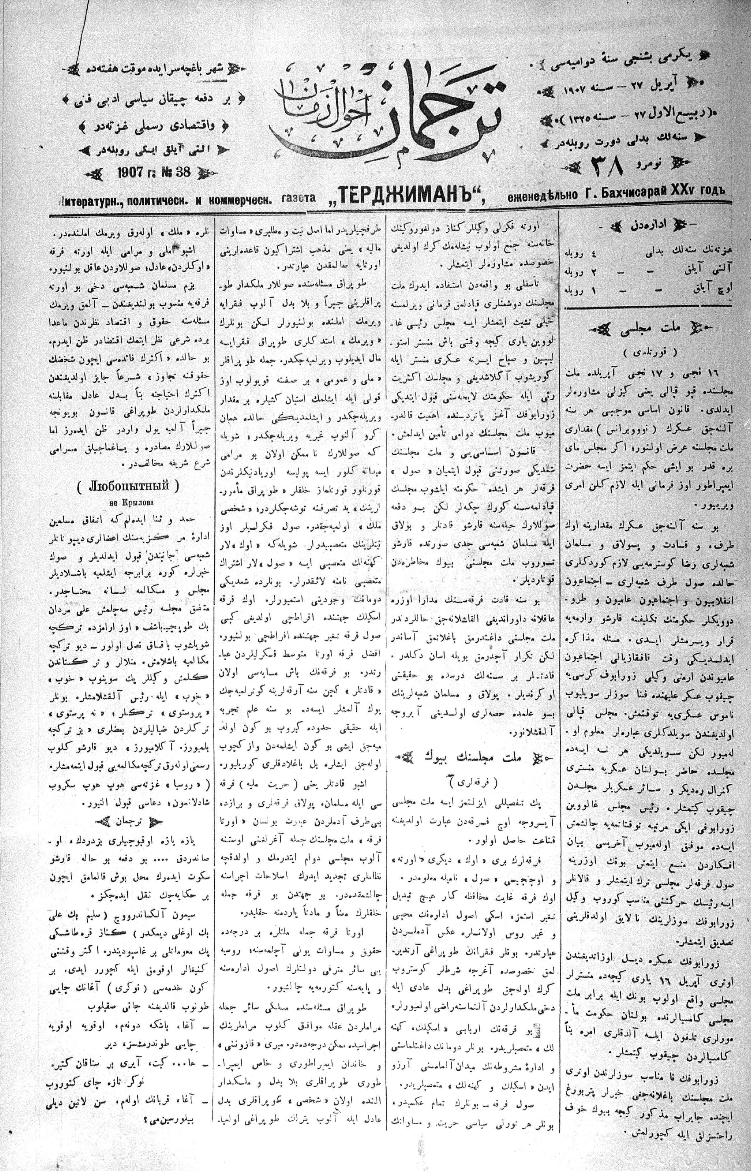 Tercüman, 27 April 1907 Year 25 No 38