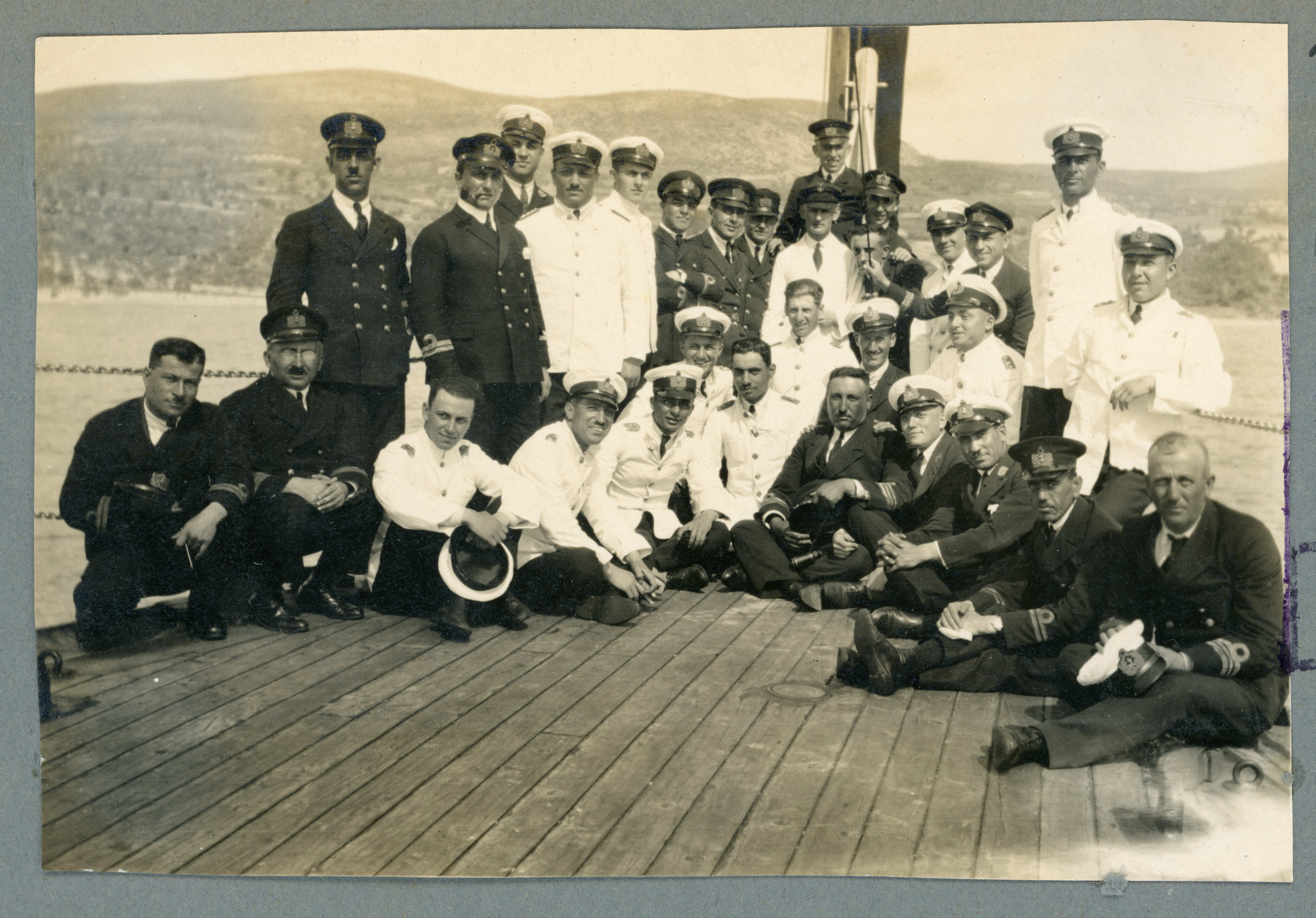 İzmir Körfezi'ne demirleyen Türk donanma gemilerinden birinin güvertesinde bahriye subaylarının çektirdikleri fotoğraf