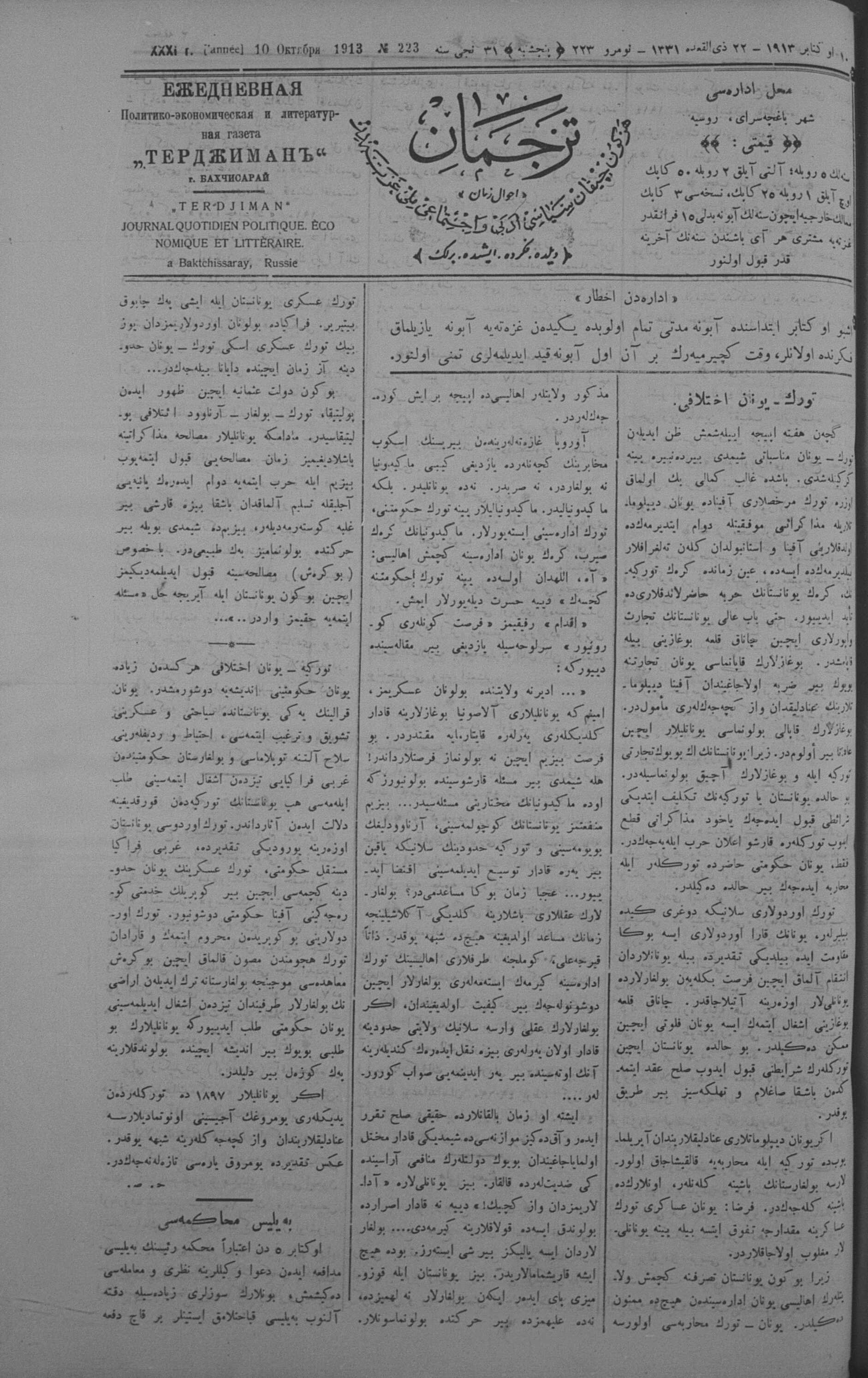 Turkish-Russian newspaper published in Crimea by İsmail Gaspıralı.