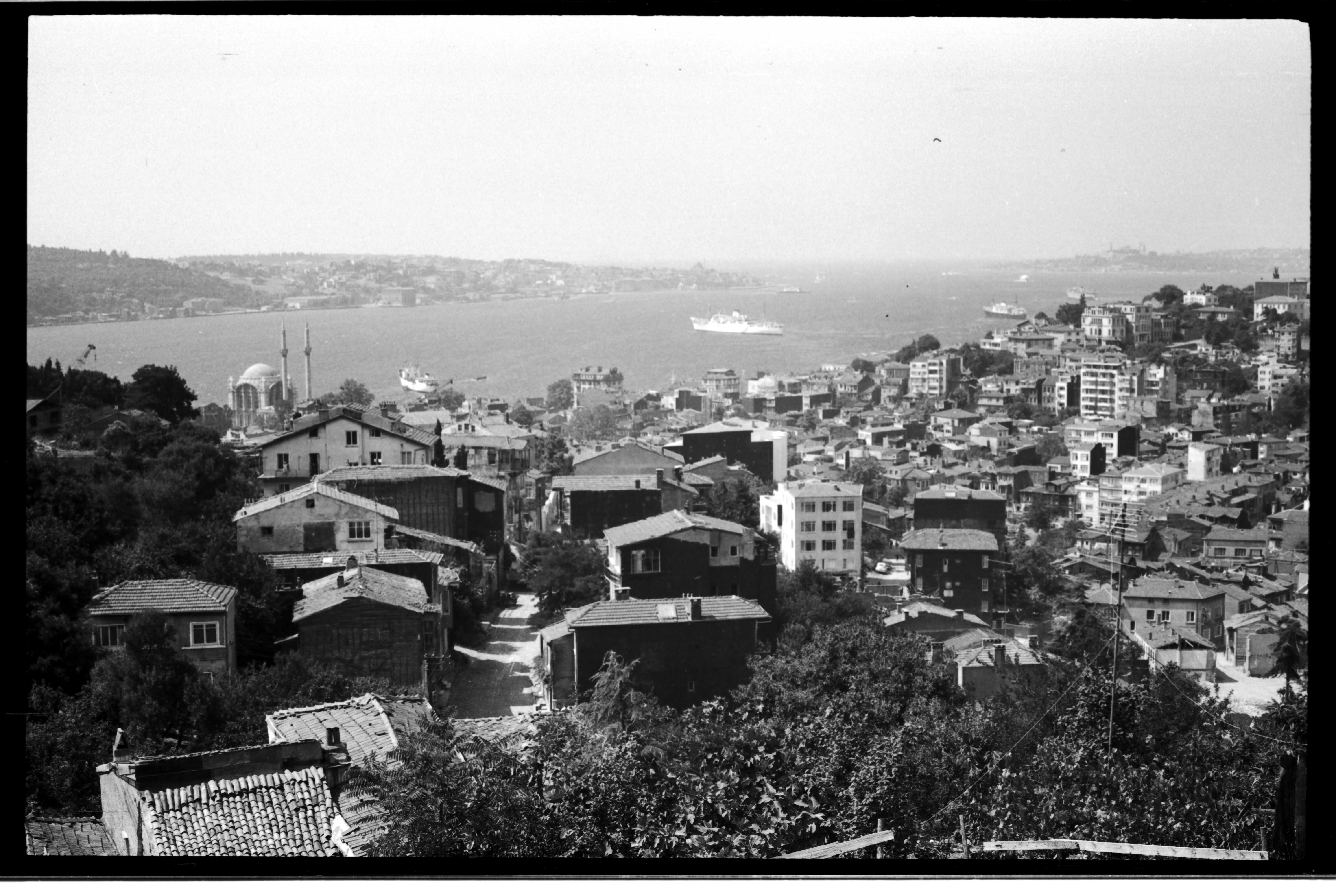 Ortaköy sırtlarından eski evlerin, Ortaköy Camii'nin ve karşı kıyının görünümü