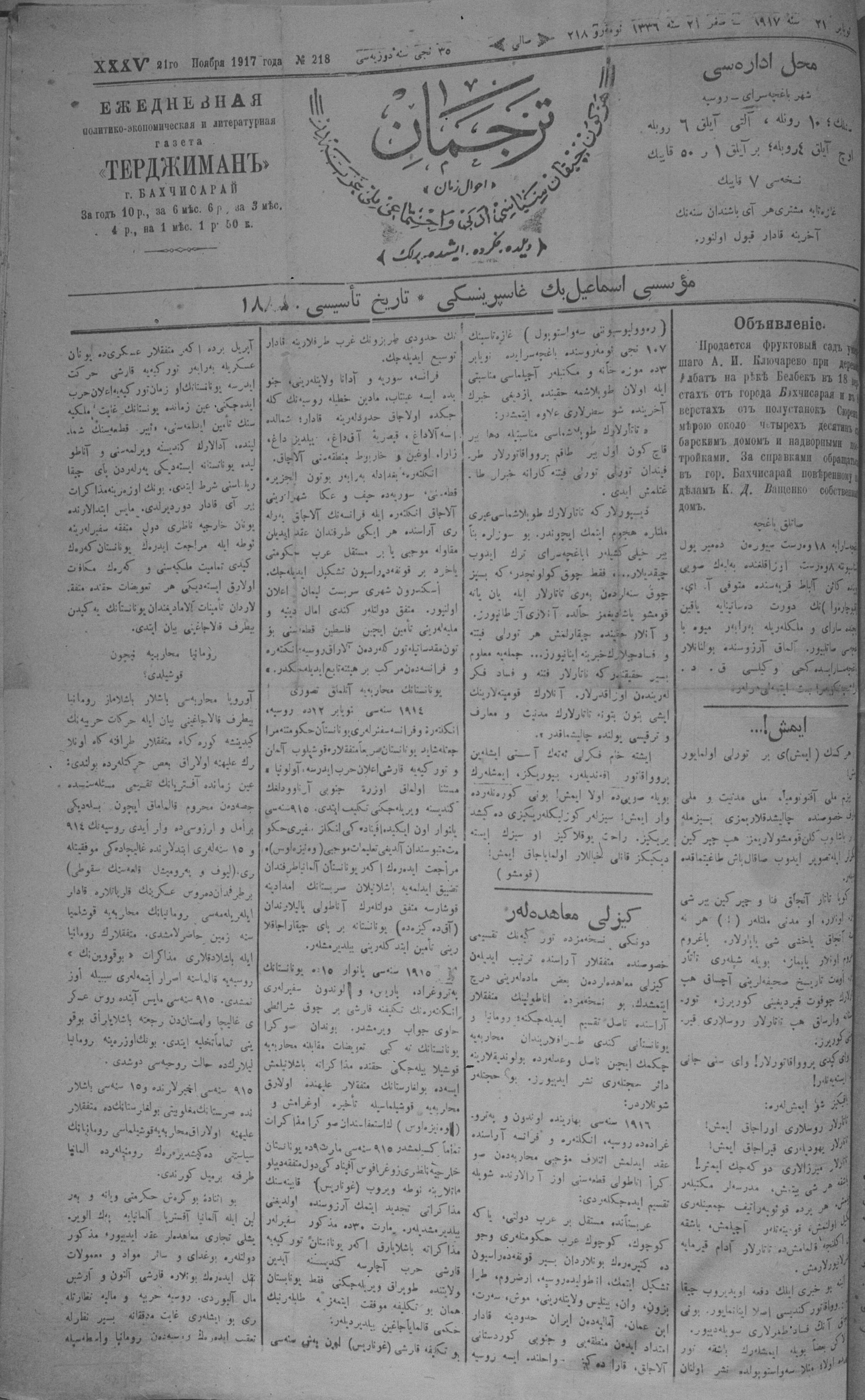 Turkish-Russian newspaper published in Crimea by İsmail Gaspıralı.