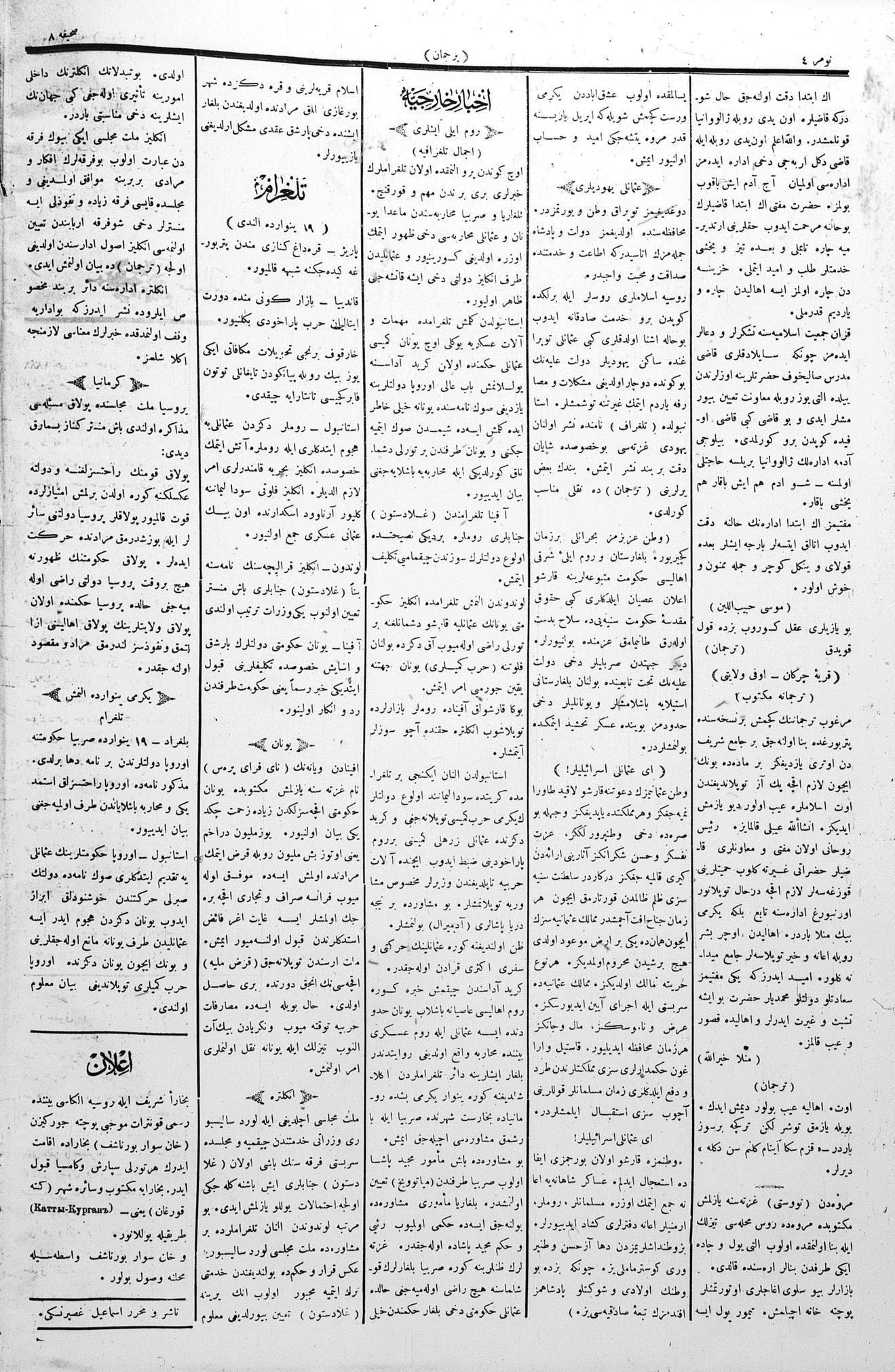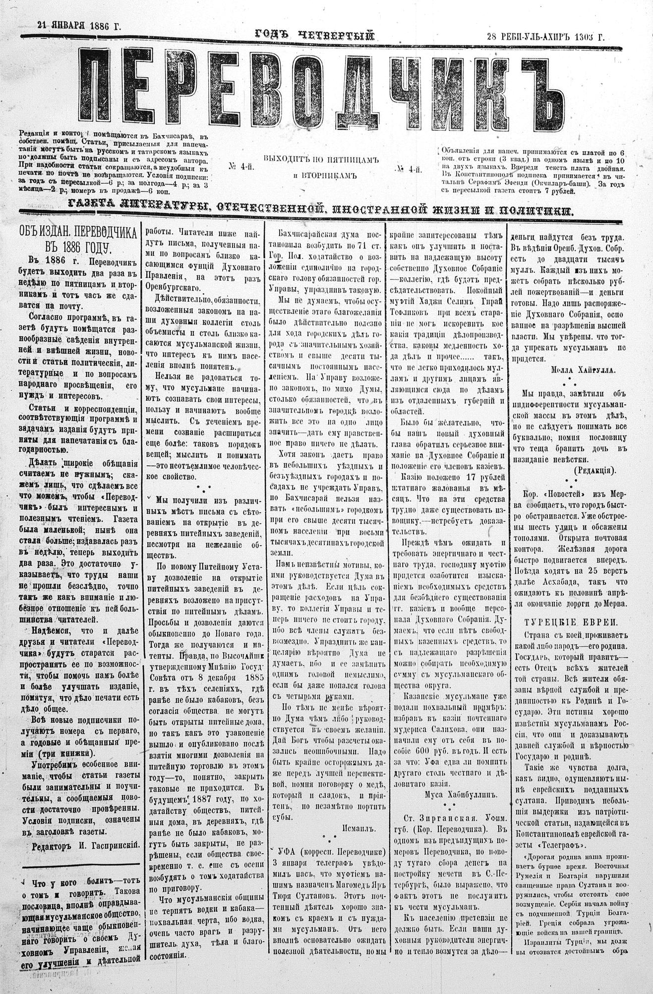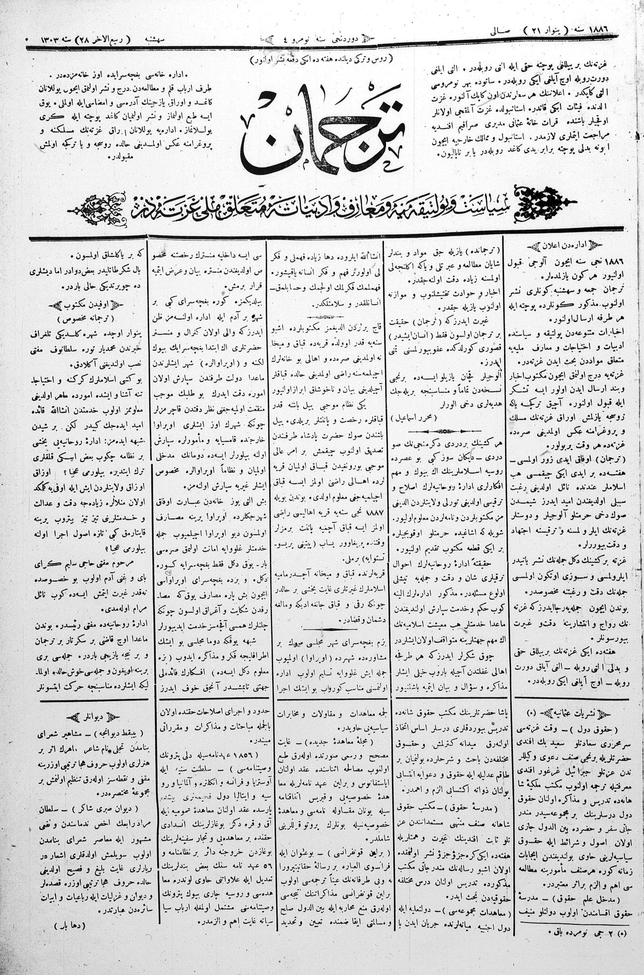 Tercüman, 21 January 1886 Year 4 No 4