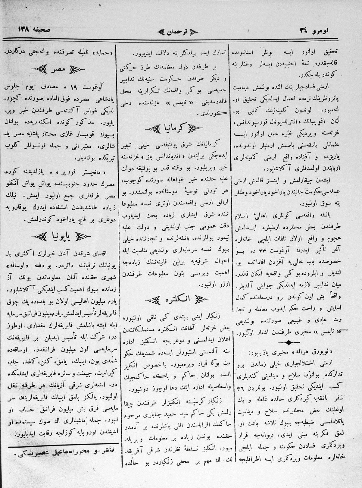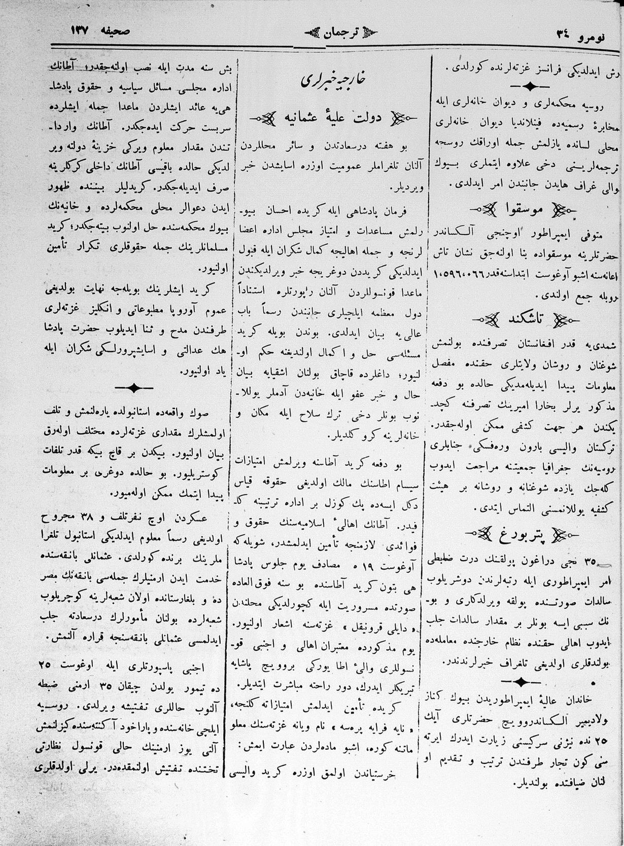 The name of the newspaper changed to Tercüman-ı Ahval-i Zaman in 1905. In 1909, it started to be published under its first name, Tercüman.
