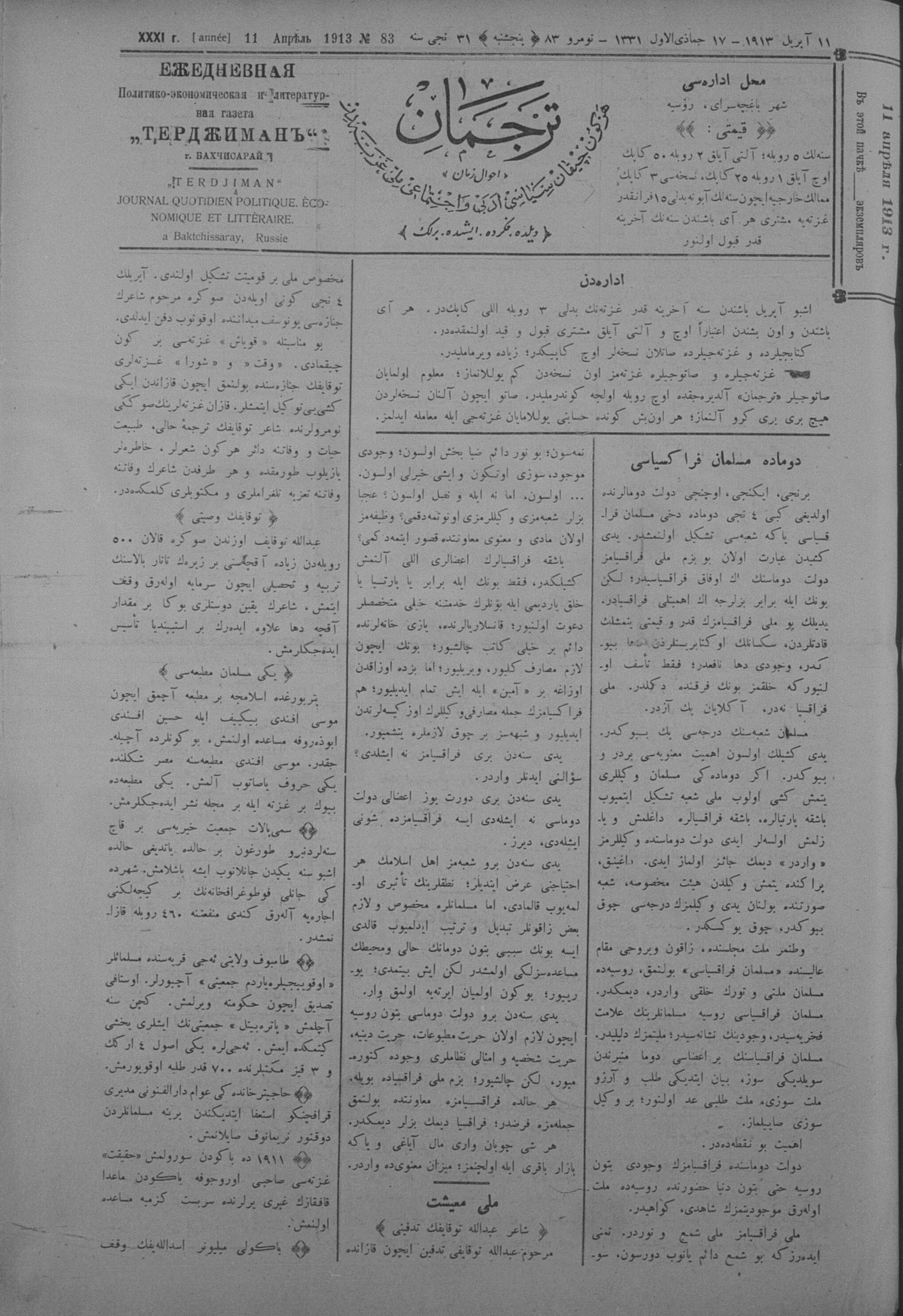 Tercüman, 11 April 1913 Year 31 No 83